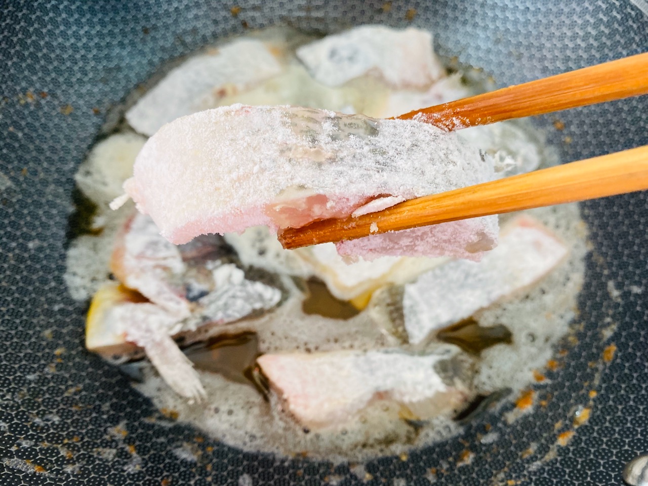 步骤2、鲈鱼处理干净切块,用厨房用纸吸干水分;