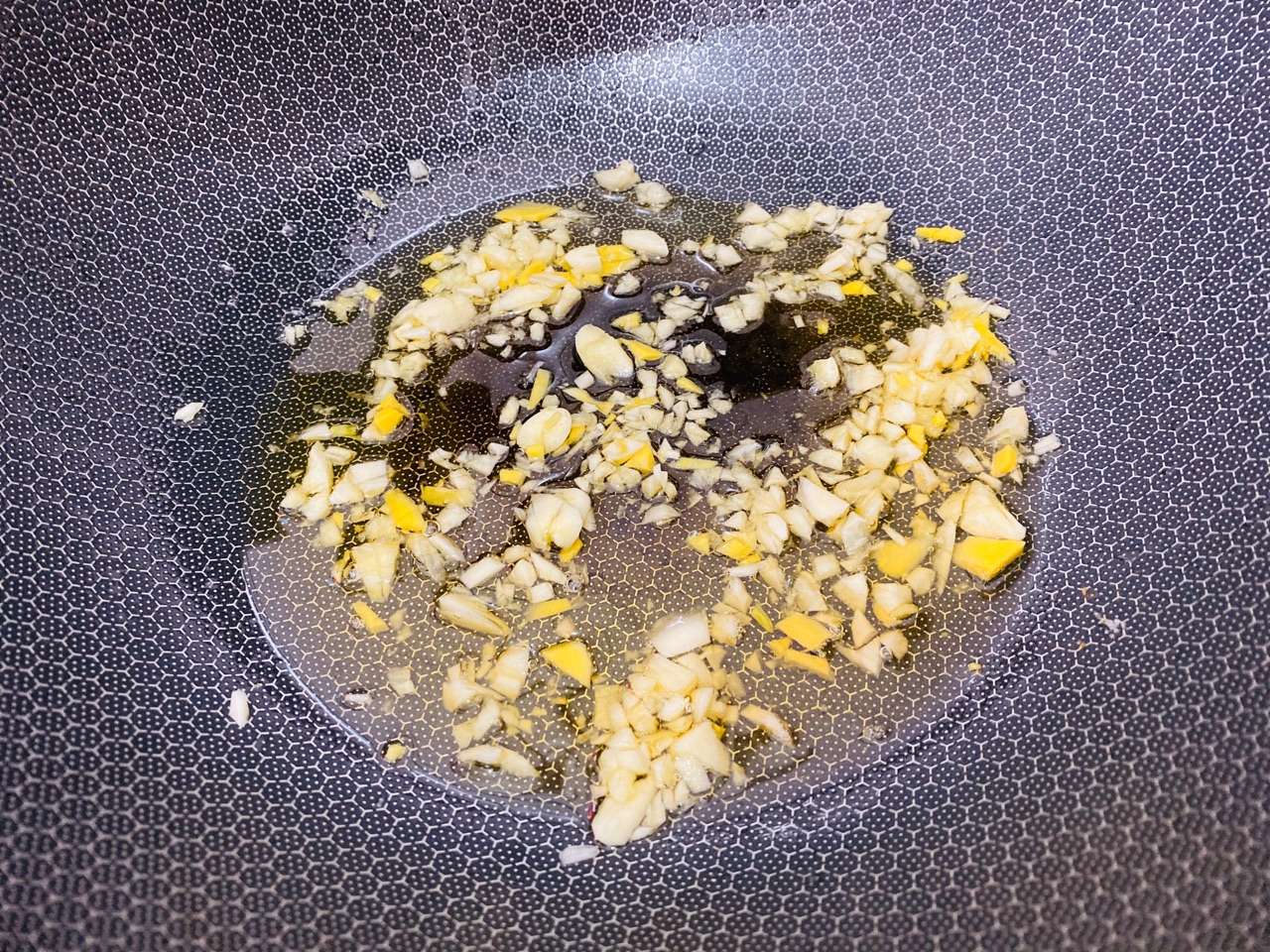步骤8、配料准备好开始做鱼煲了,热油放入蒜末和姜末爆香;