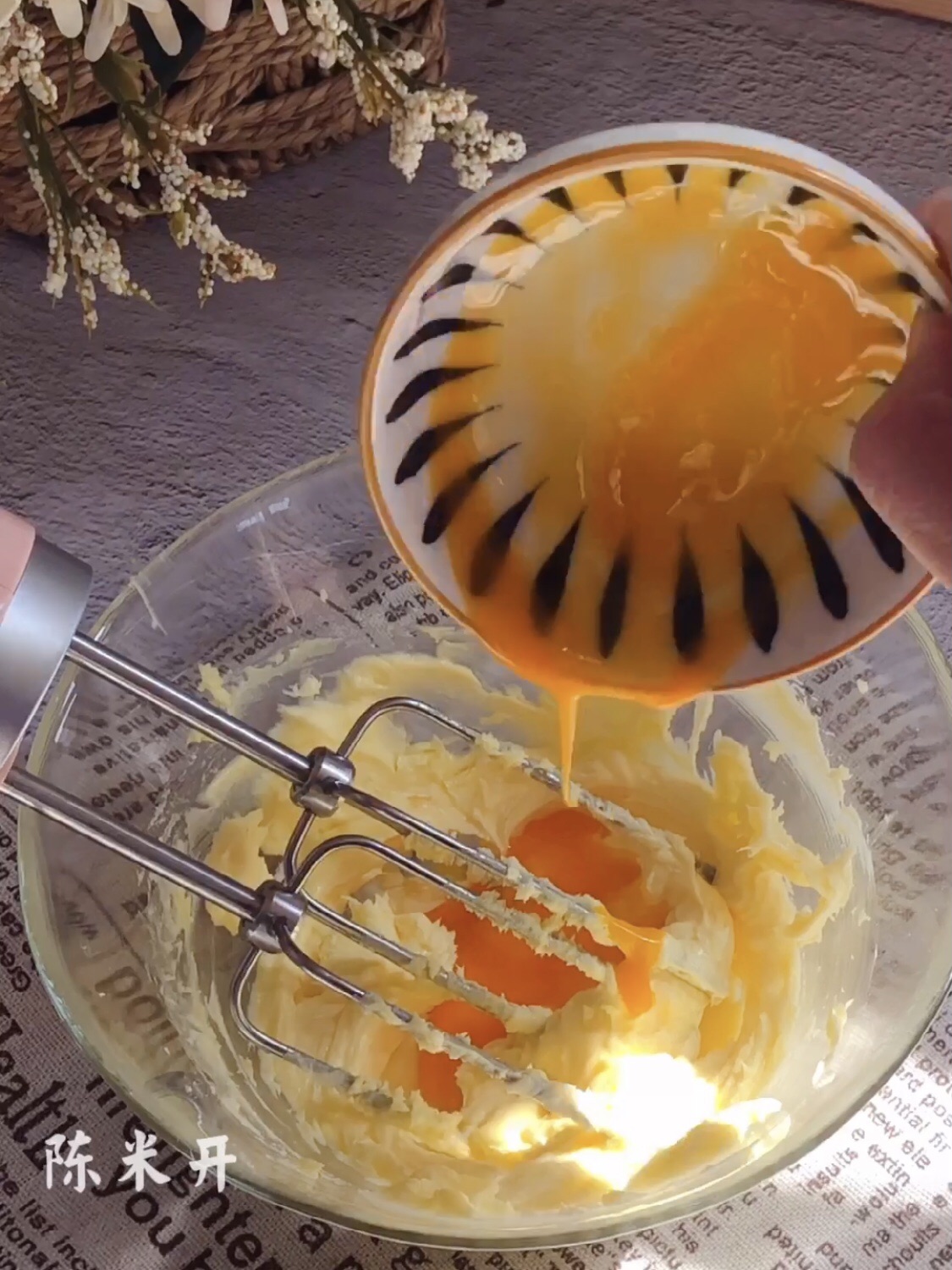 步骤3、打发至蓬大,发白。
