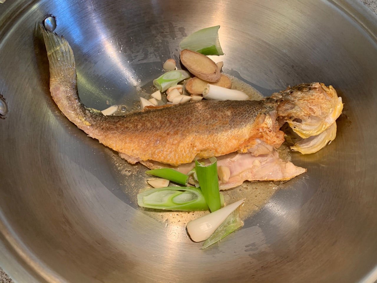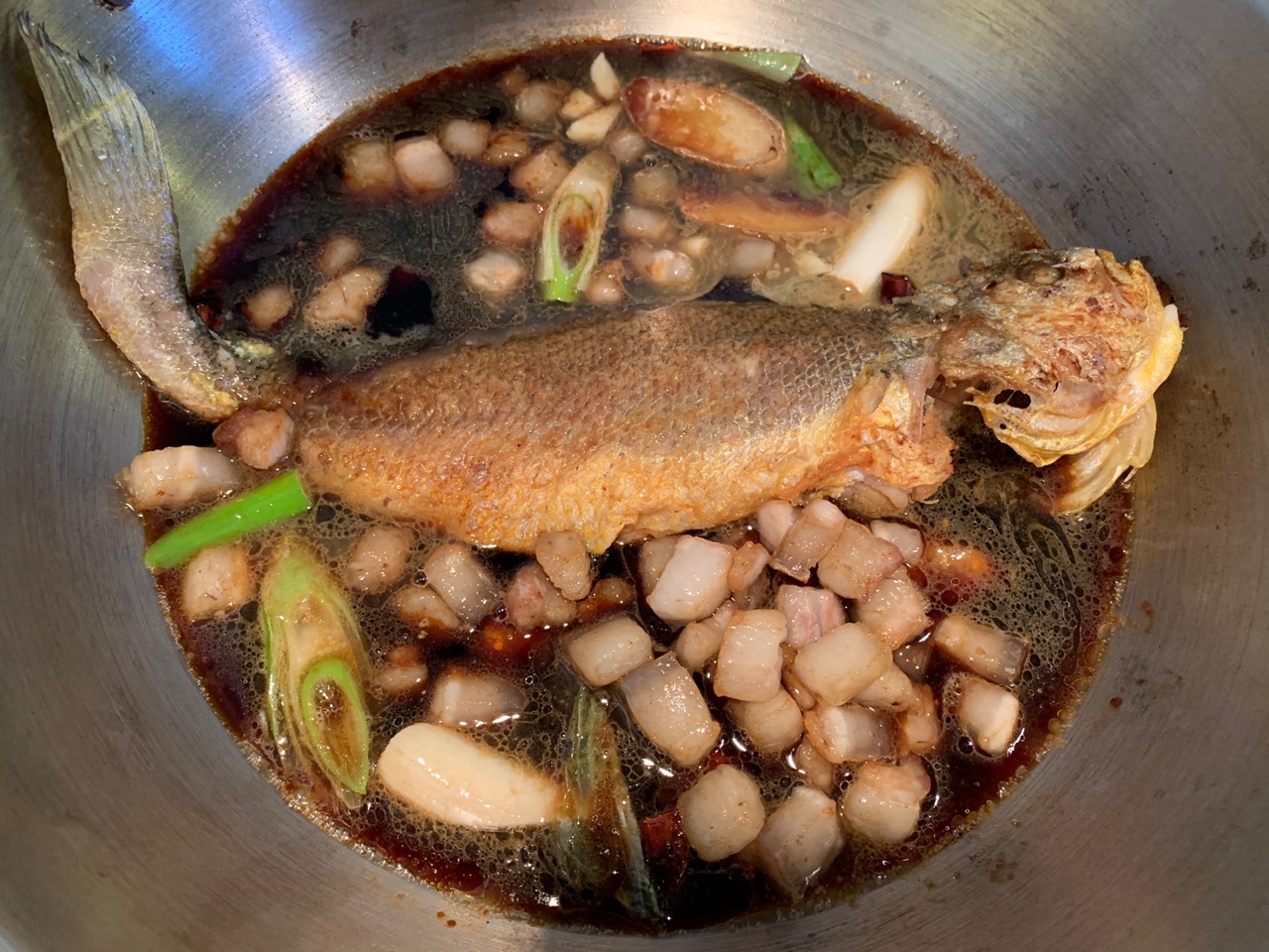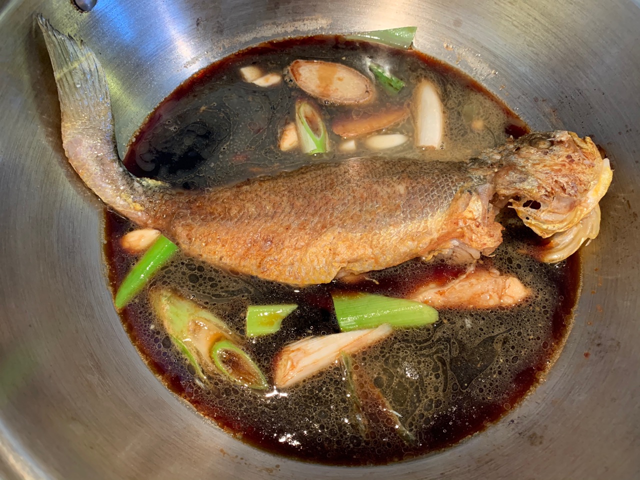 用五花肉熬出来的油煎鱼炖出来的鱼特别香,一般人我不告诉他。调料用了味达美的冰糖老抽,酱油和料酒,用这套红烧调料不管是做鱼还是炖肉都特别好吃。