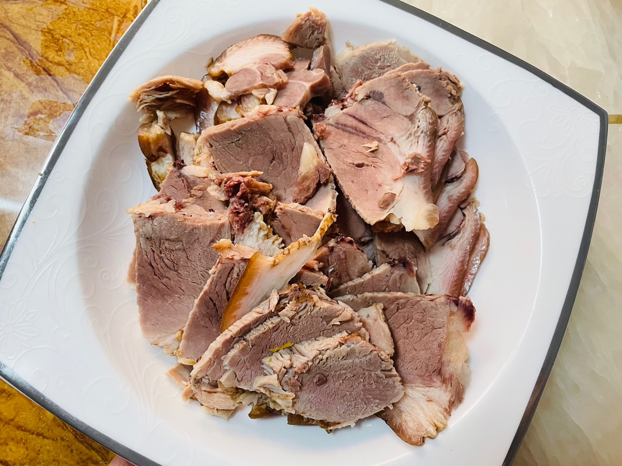 步骤1、煮好的肘子肉