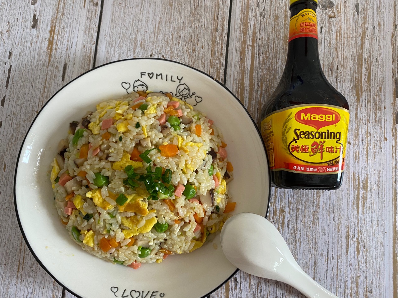 主料:大米饭一碗、鸡蛋1个