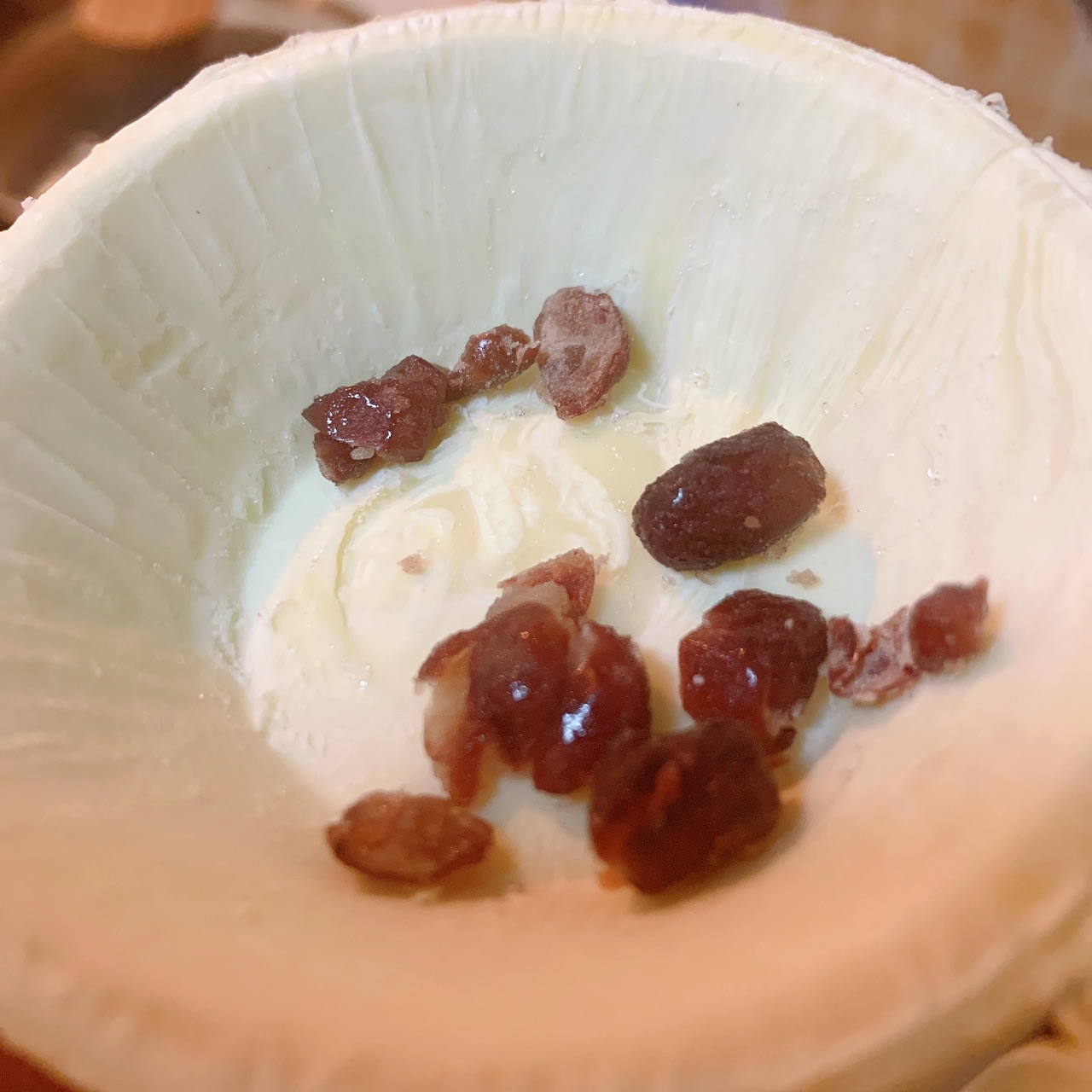步骤7、蛋挞皮里加红豆?加葡萄干?全凭你喜欢