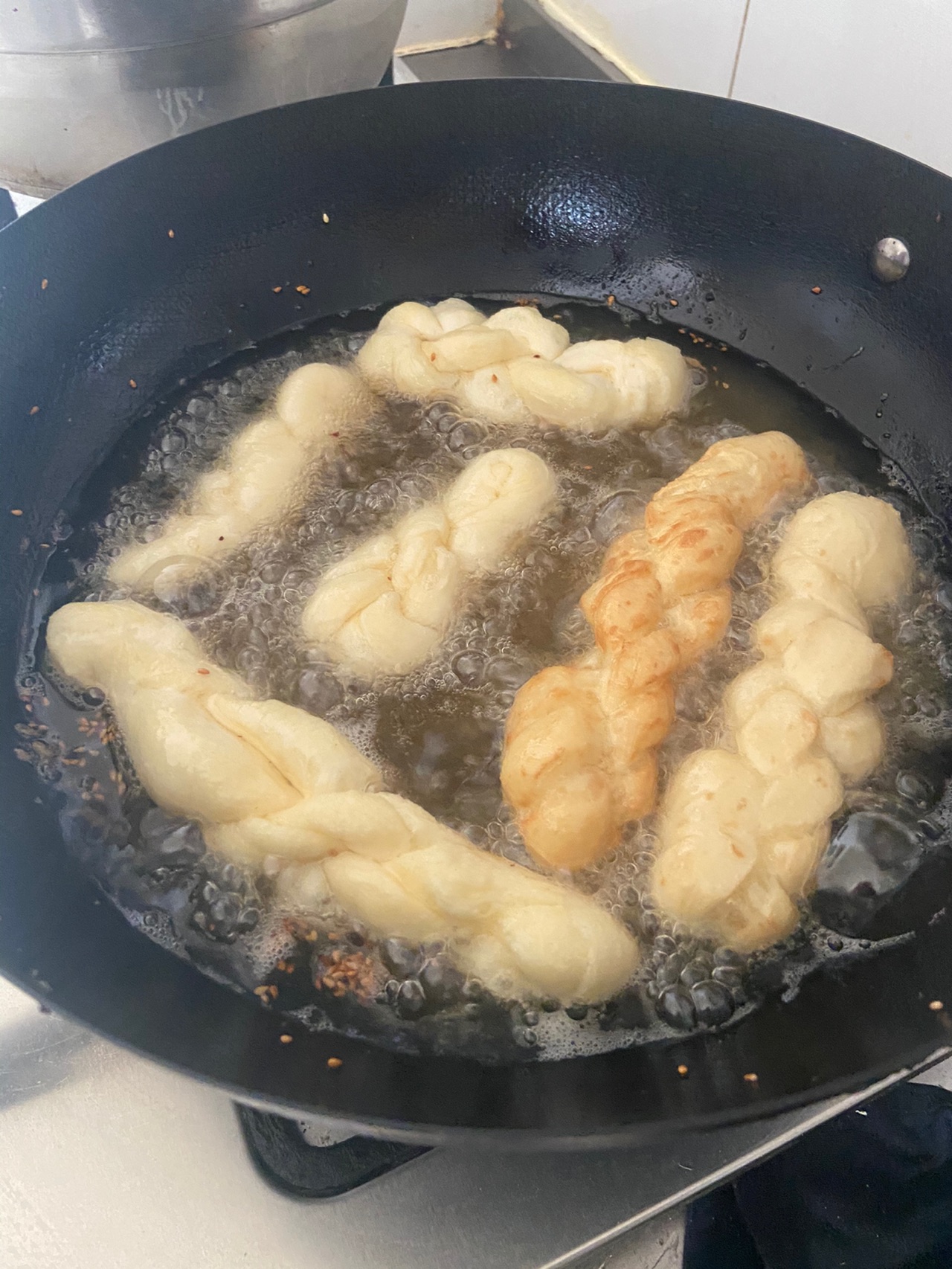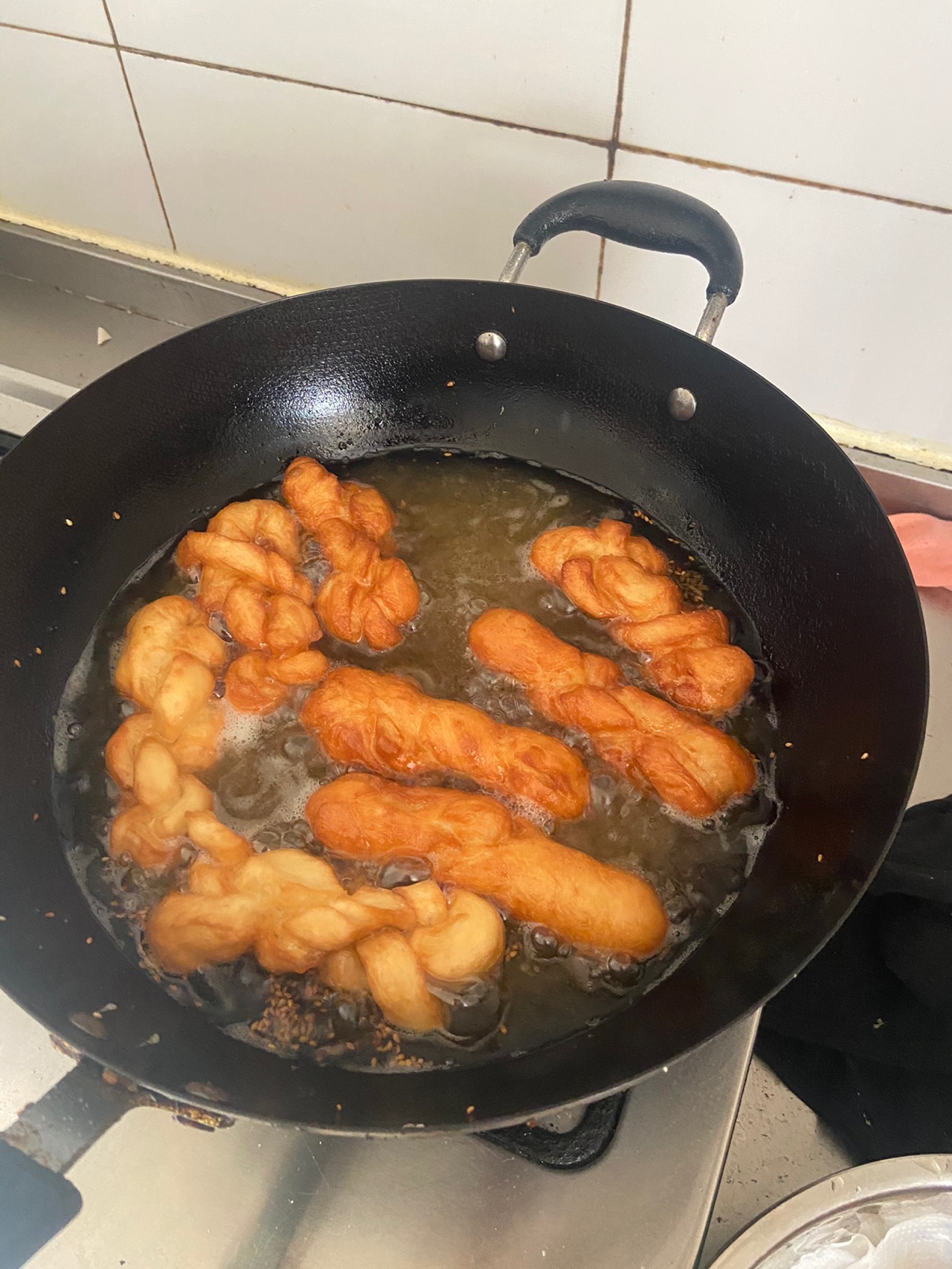 步骤9、锅中油热后就可以开始炸了!(筷子插进去冒泡)