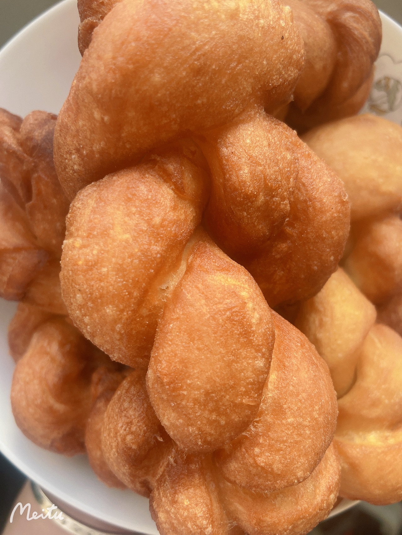步骤7、两头拎起来面团自己会拧成麻花状!