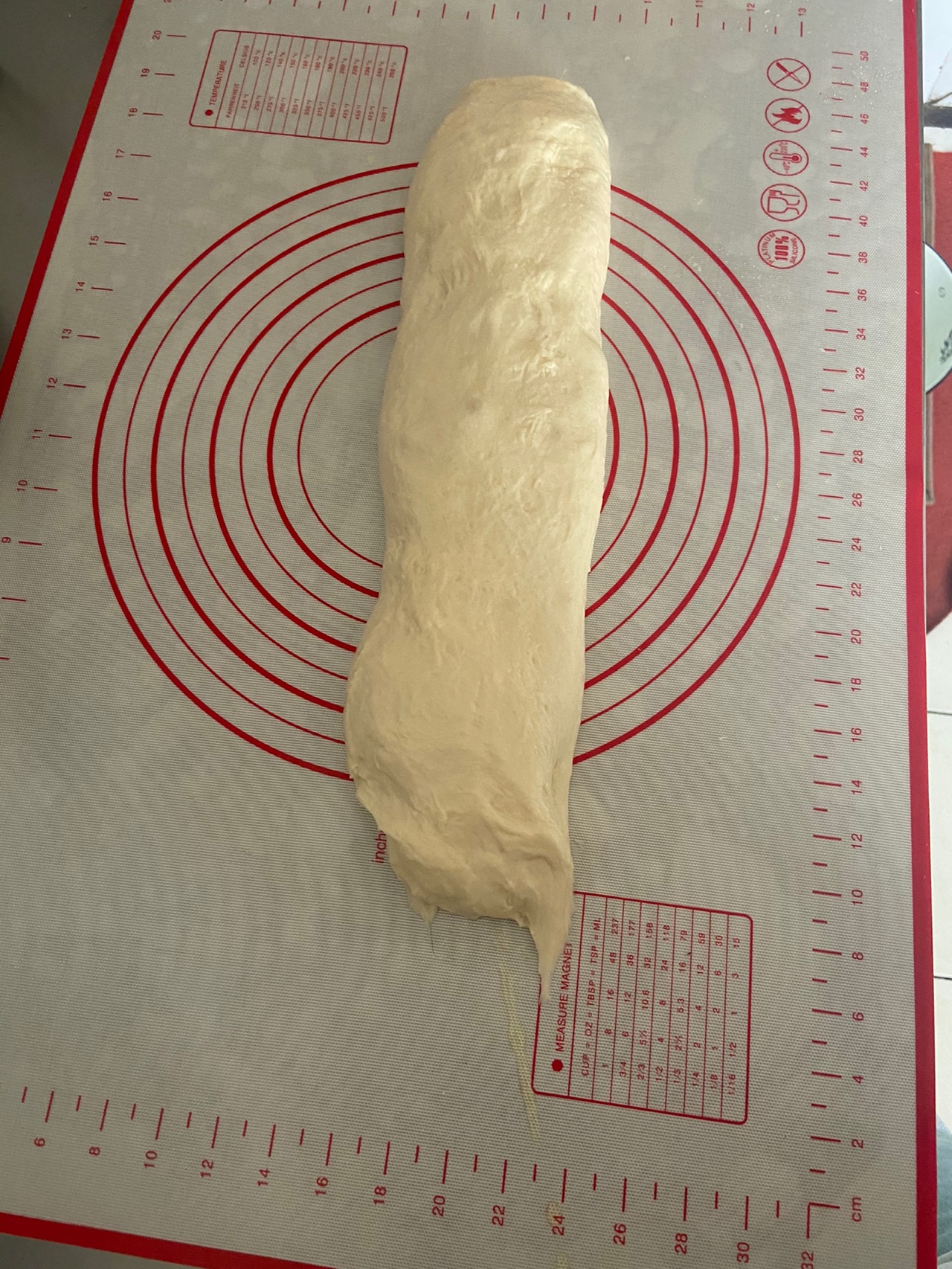 步骤8、两头再对折,麻花生胚就做好了,做好的生胚松弛5分钟!