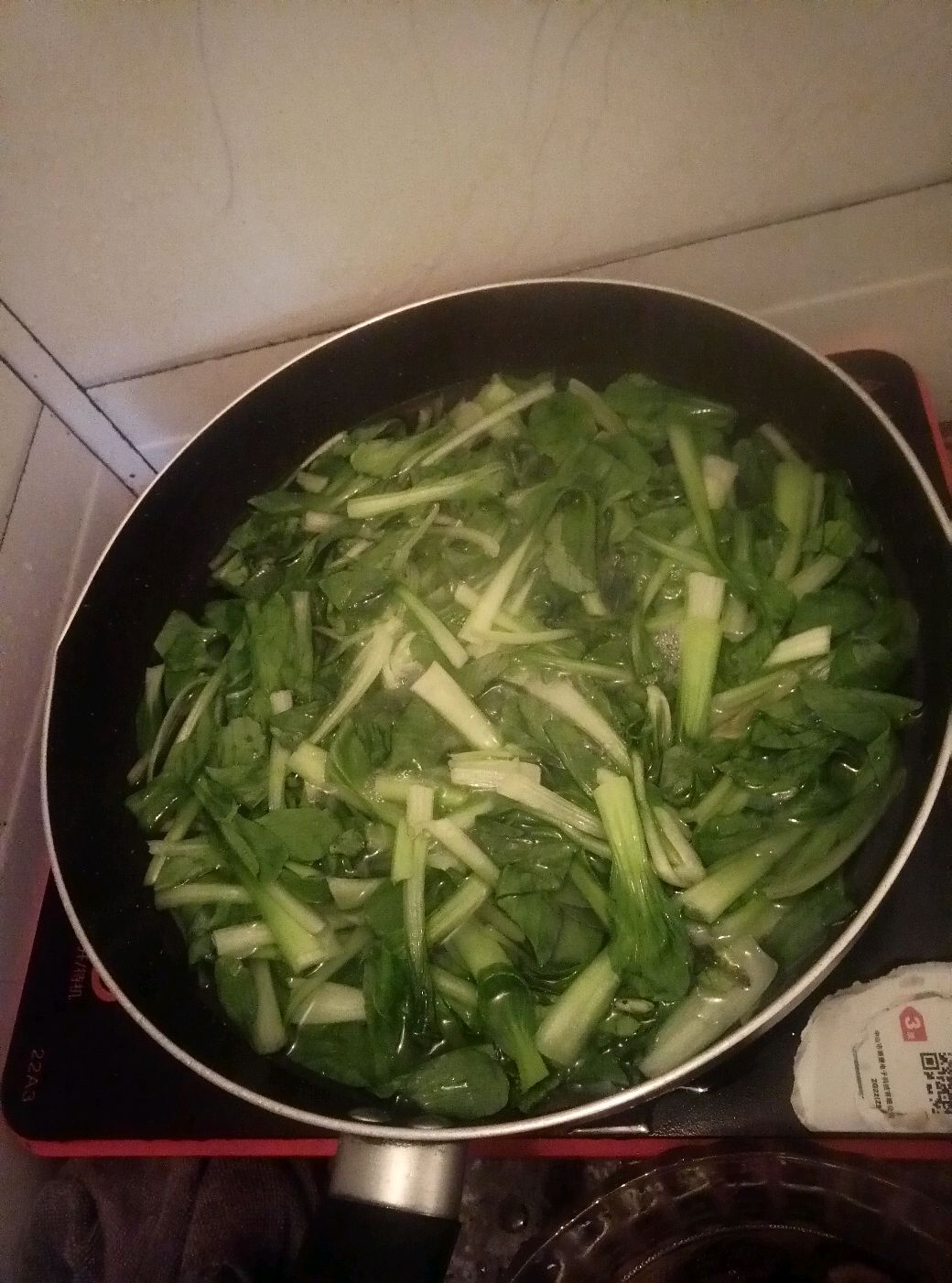 步骤1、鸡毛菜洗净,开水汆烫,过凉水,捏干水分