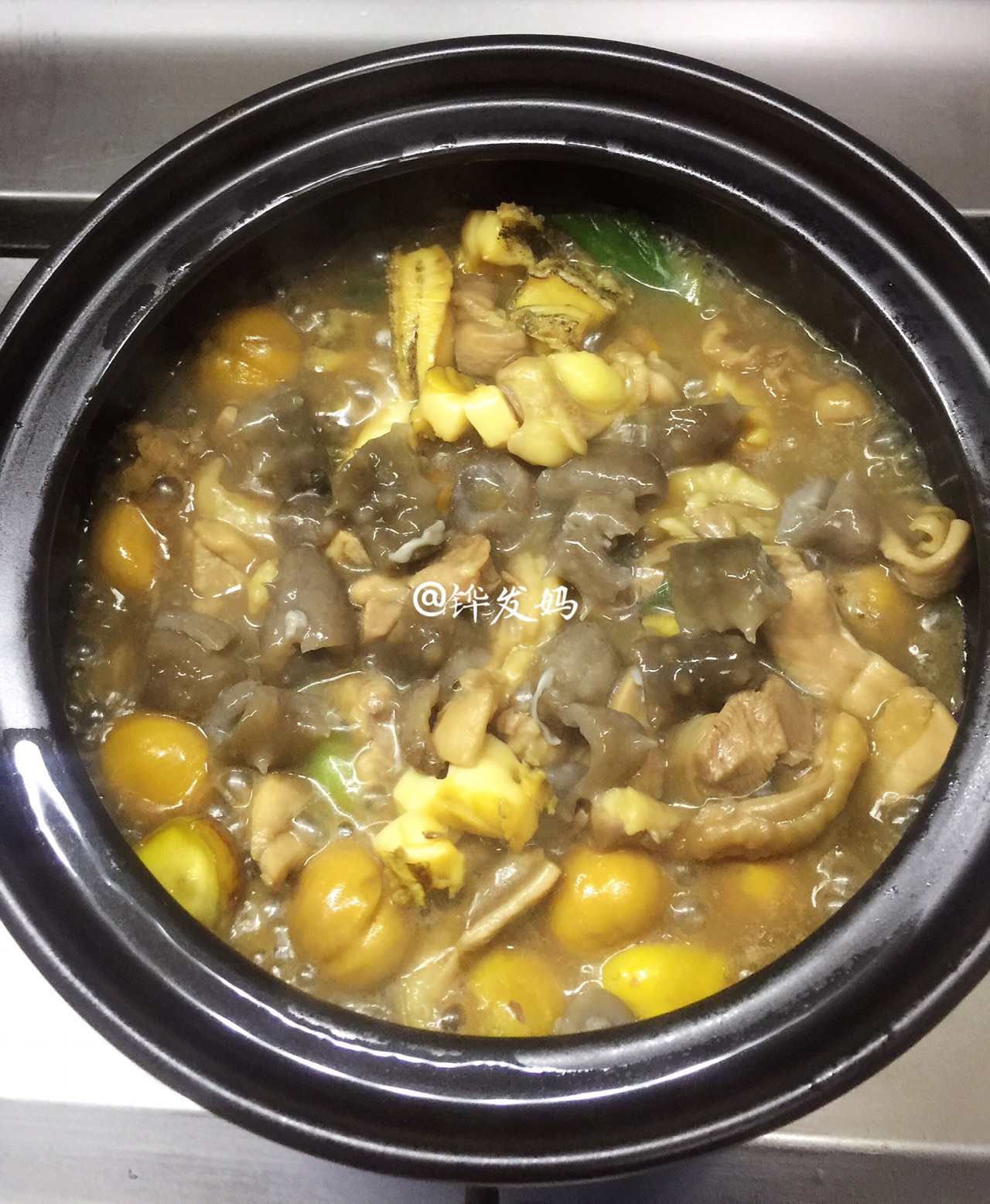 步骤12、成品图:双鲜滋味鲍汁蚝油鸡肉鲍鱼海参栗子煲