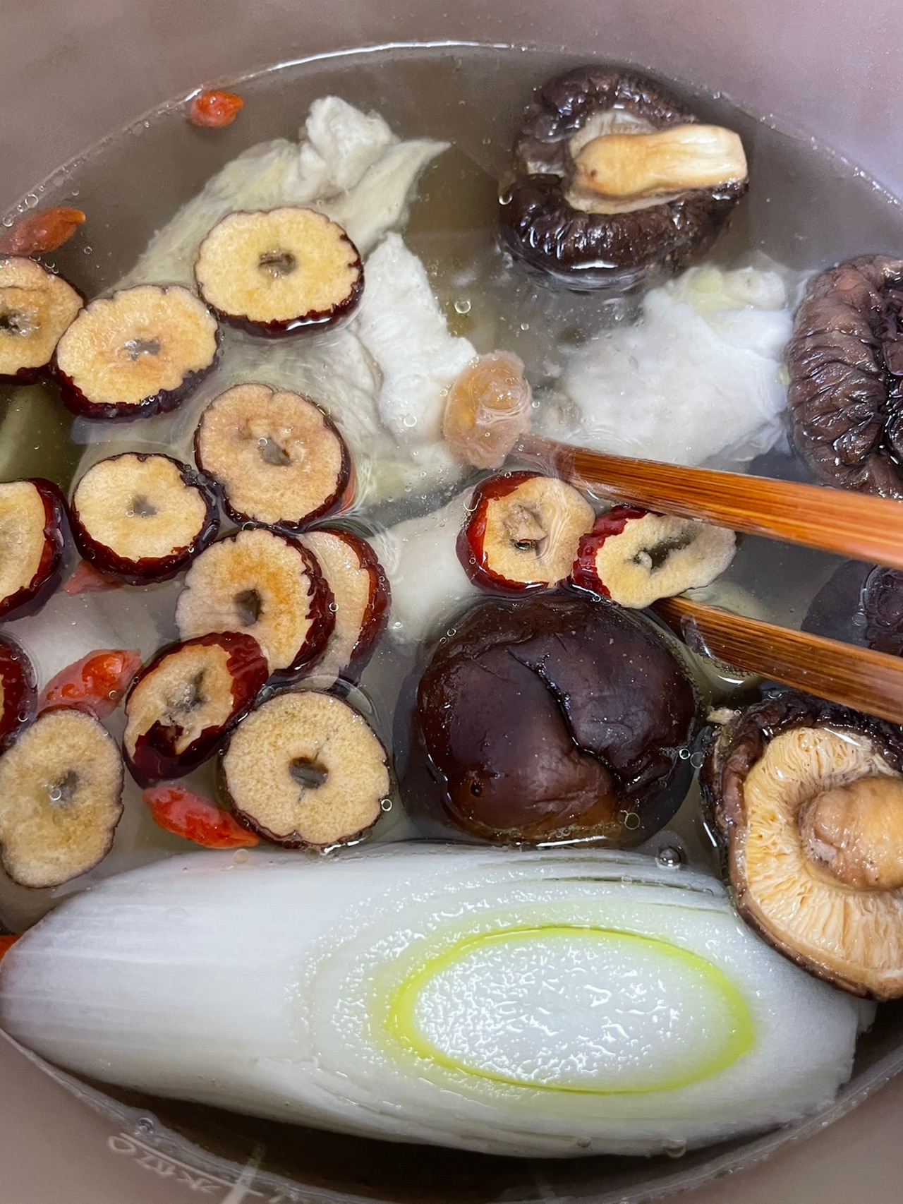 鸡汤炖上就不用管了,到时间了开锅便是美味,所以这又是一碗懒人饭,哈哈