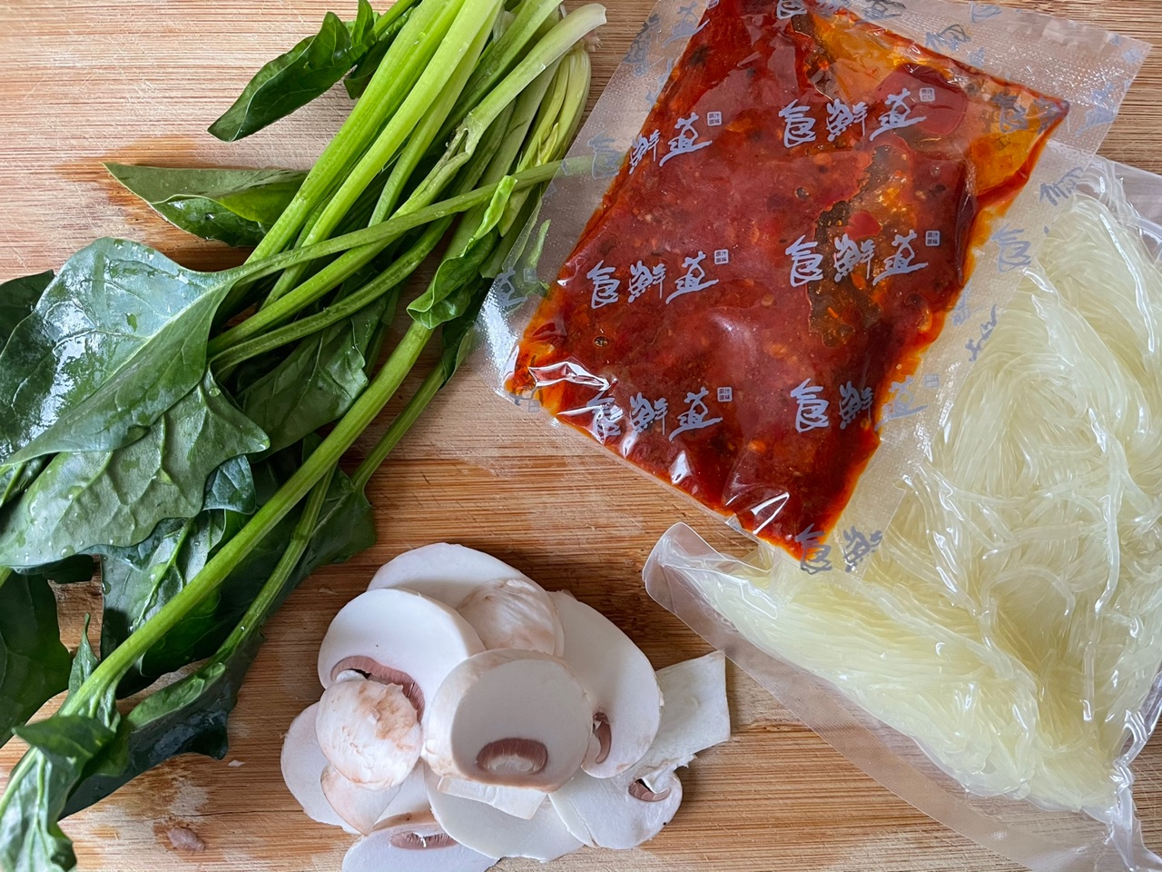 步骤4、米线材料准备(没提前炒酱料,所以买的速食)