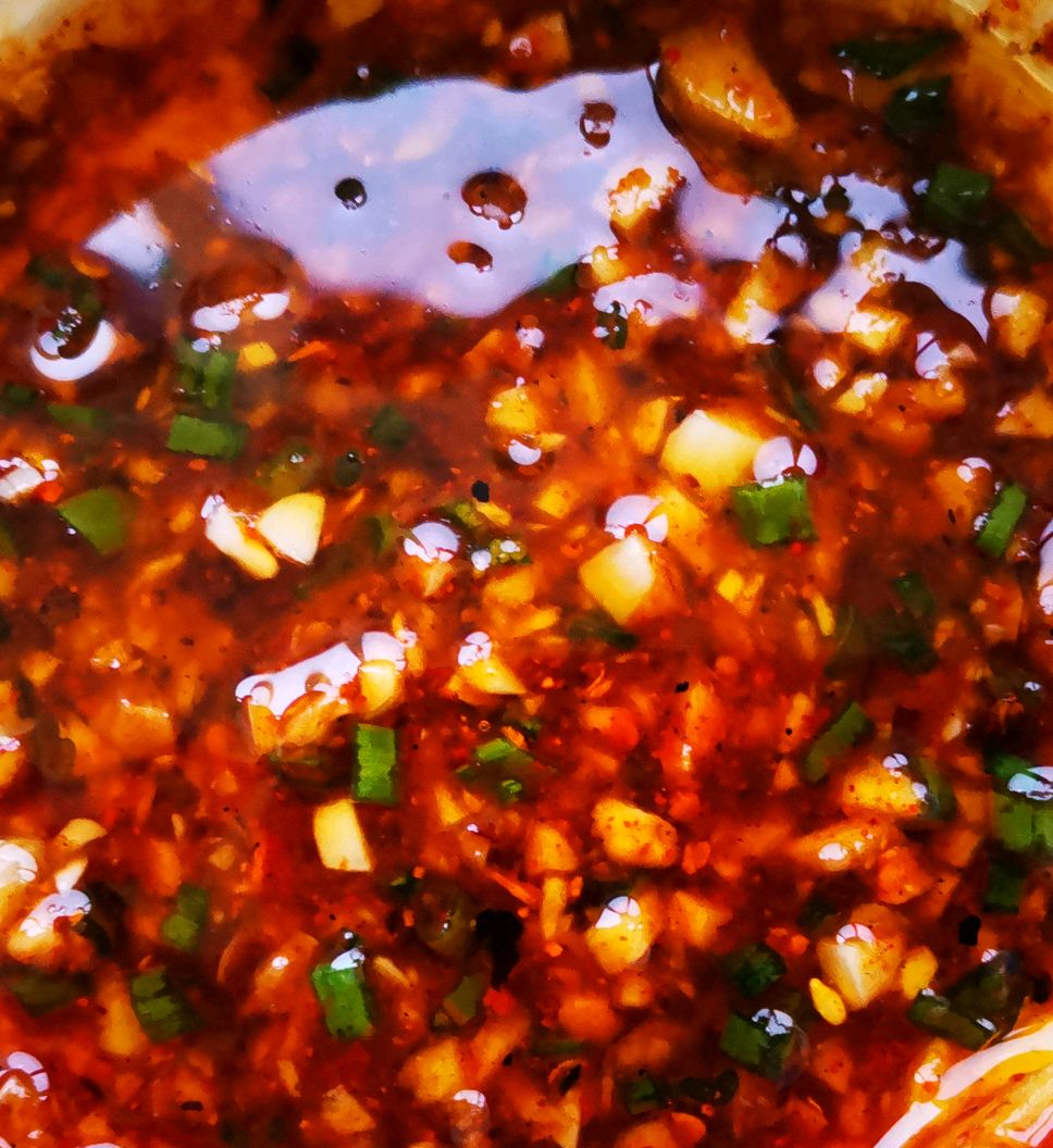 步骤1、先来做个调料,蒜泥(不喜欢吃的可以不放),葱花,蚝油,辣椒粉(我用的云南蘸水辣,不辣很香),白糖,然后搅和搅和,待会泼少许热油搅拌均匀。