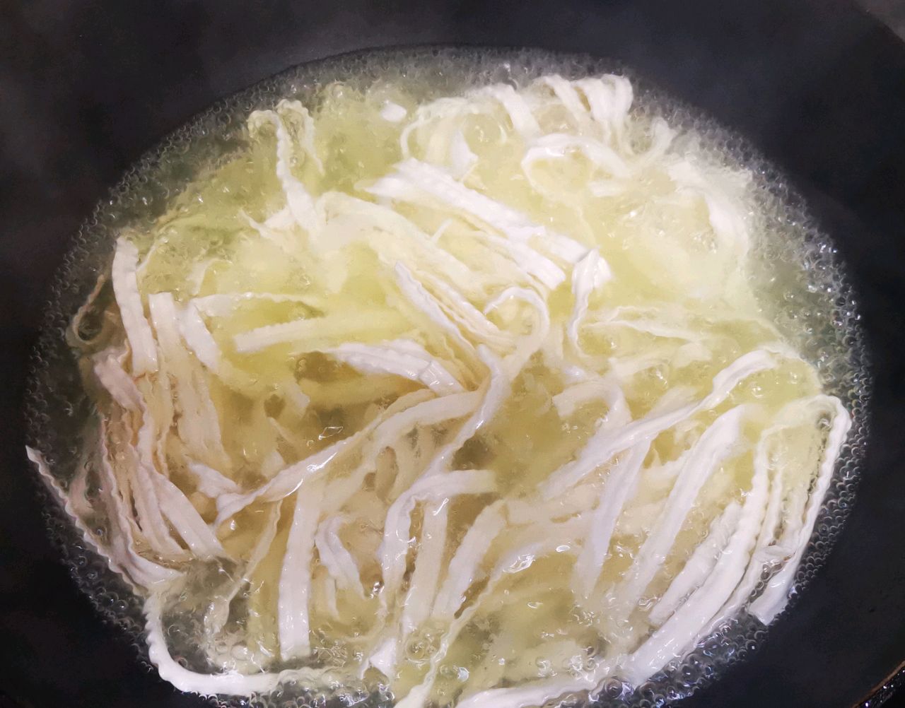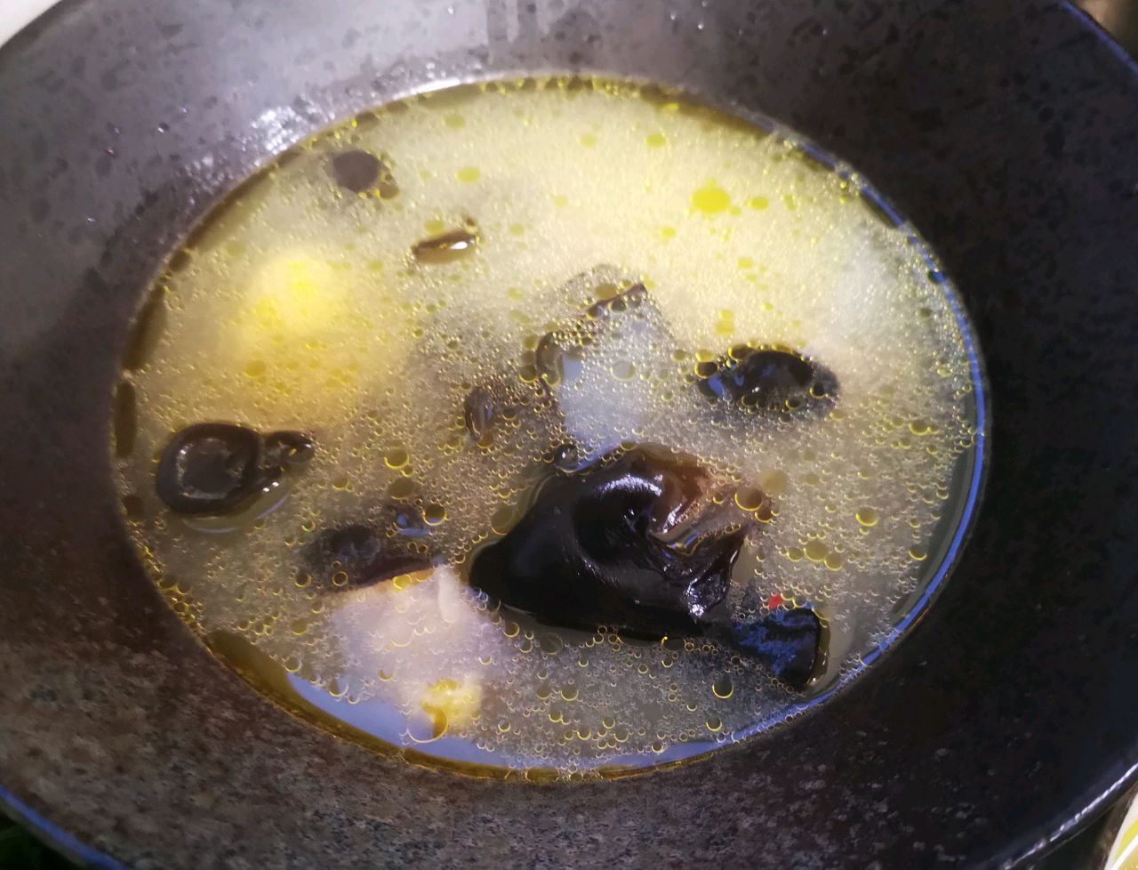 步骤9、热好中午的剩鸡汤,等面好了,捞进去。