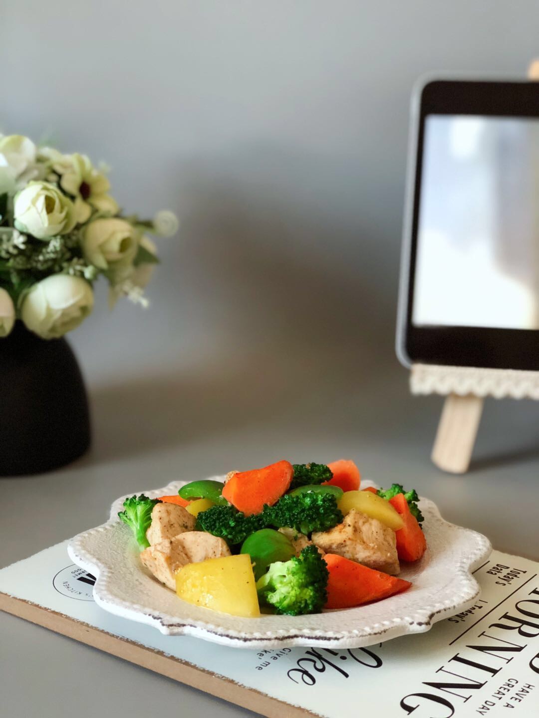 步骤14、一盘美味的鸡胸肉烤时蔬就做好了
