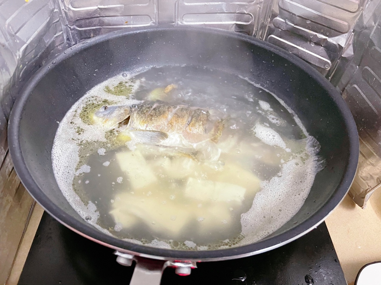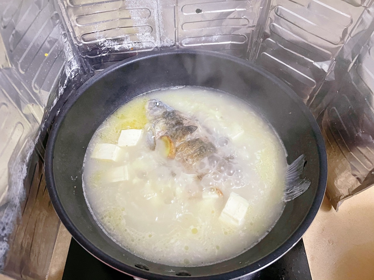 奶白色的鲫鱼豆腐汤,超级鲜美, 它含有丰富的蛋白质,含糖量比较低,适合广大人群。
