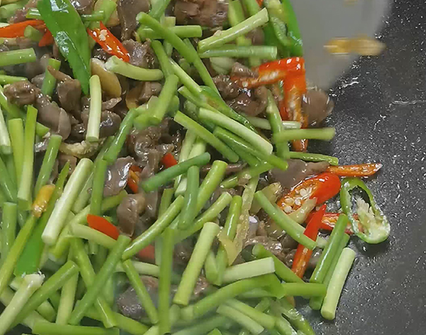 步骤12、装盘,好吃的鸡肫炒蒜苔就做好了。