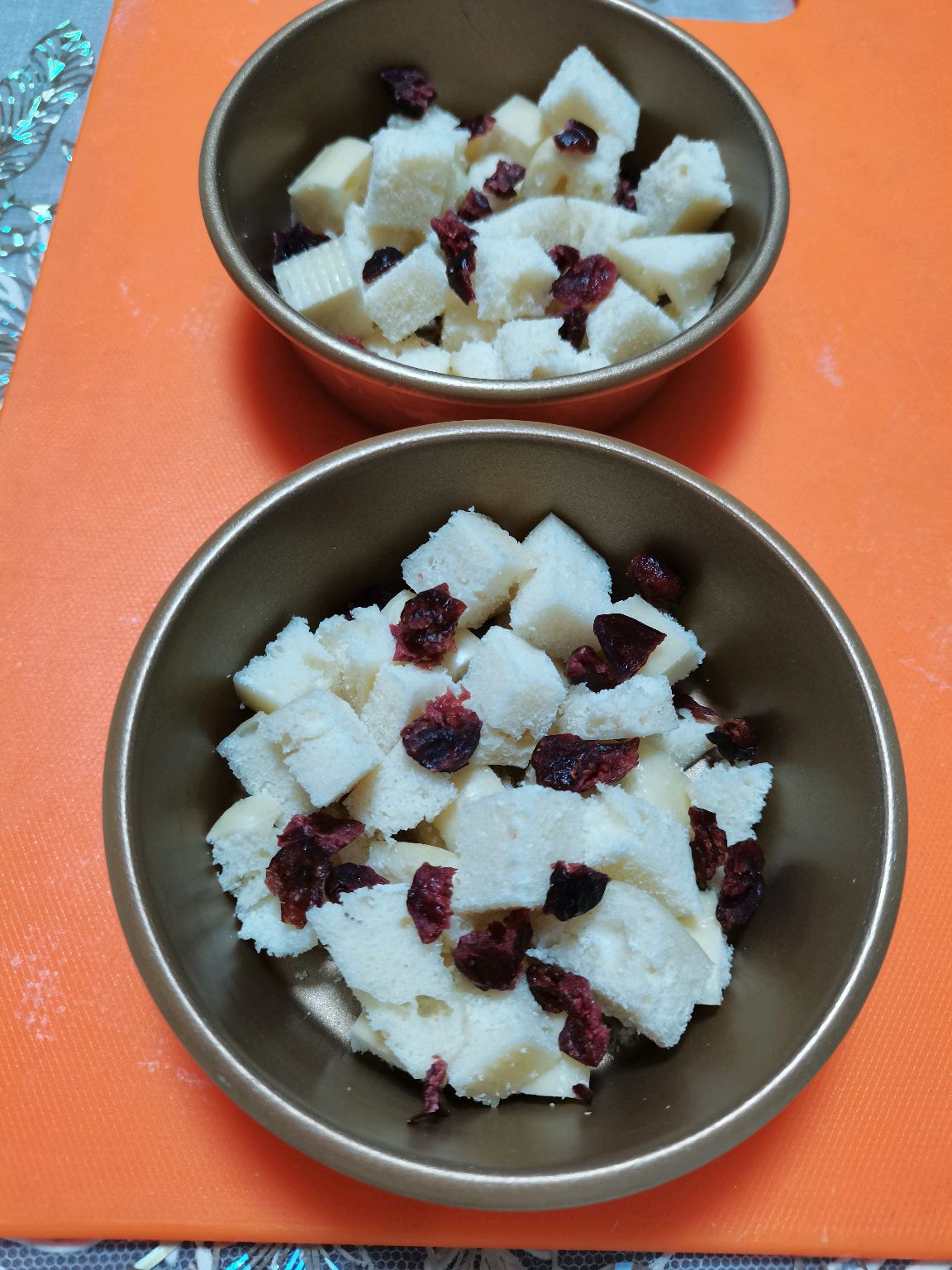 馒头可以用土司代替,做成土司布丁,没有蔓越莓干可以放葡萄干一样的好吃