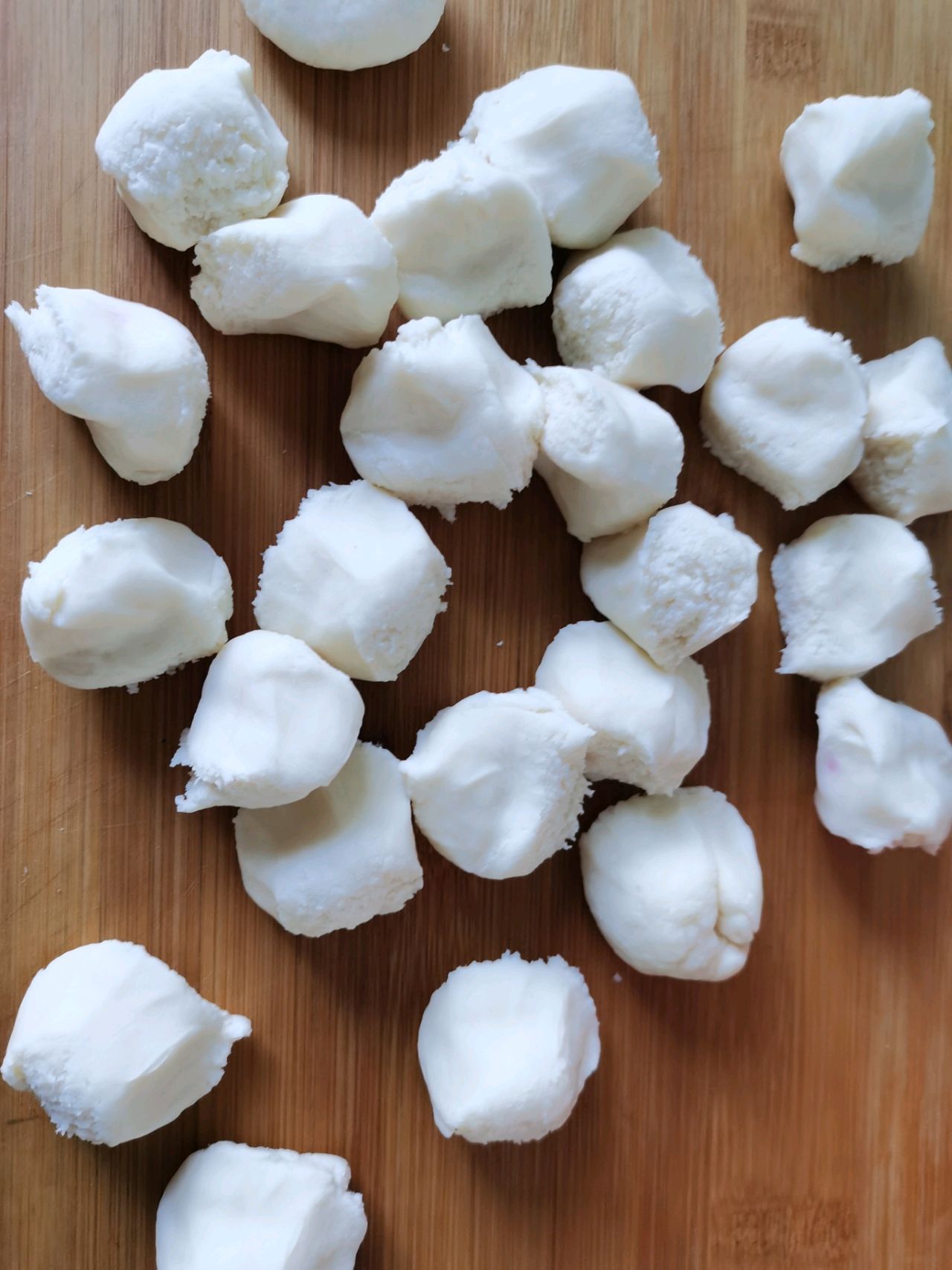 步骤1、面粉250克,盐一克,火龙果汁适量,食用油少许,混合在一起,揉成光滑细腻面团,醒十分钟,分成大小均匀的面剂
