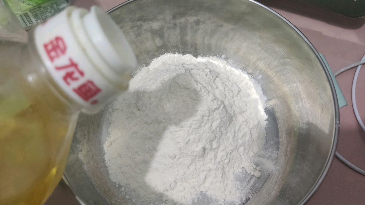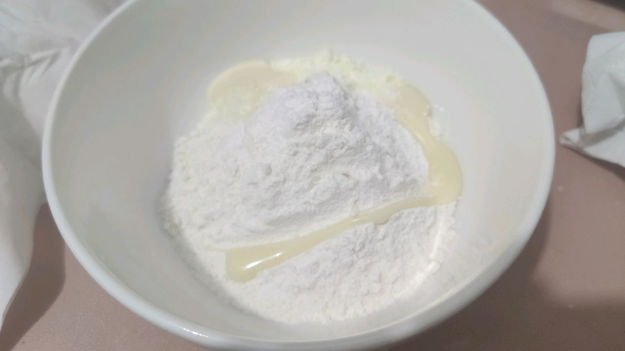 步骤10、适量面粉防止食用时烫嘴,少量炼乳