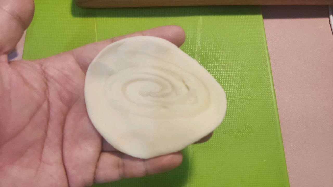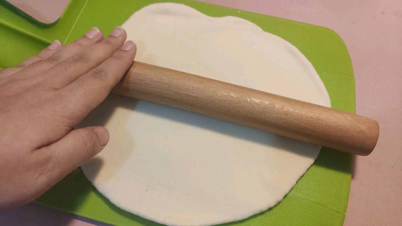 步骤25、放入锅中,不用刷油,全程小火,一面烙5分钟