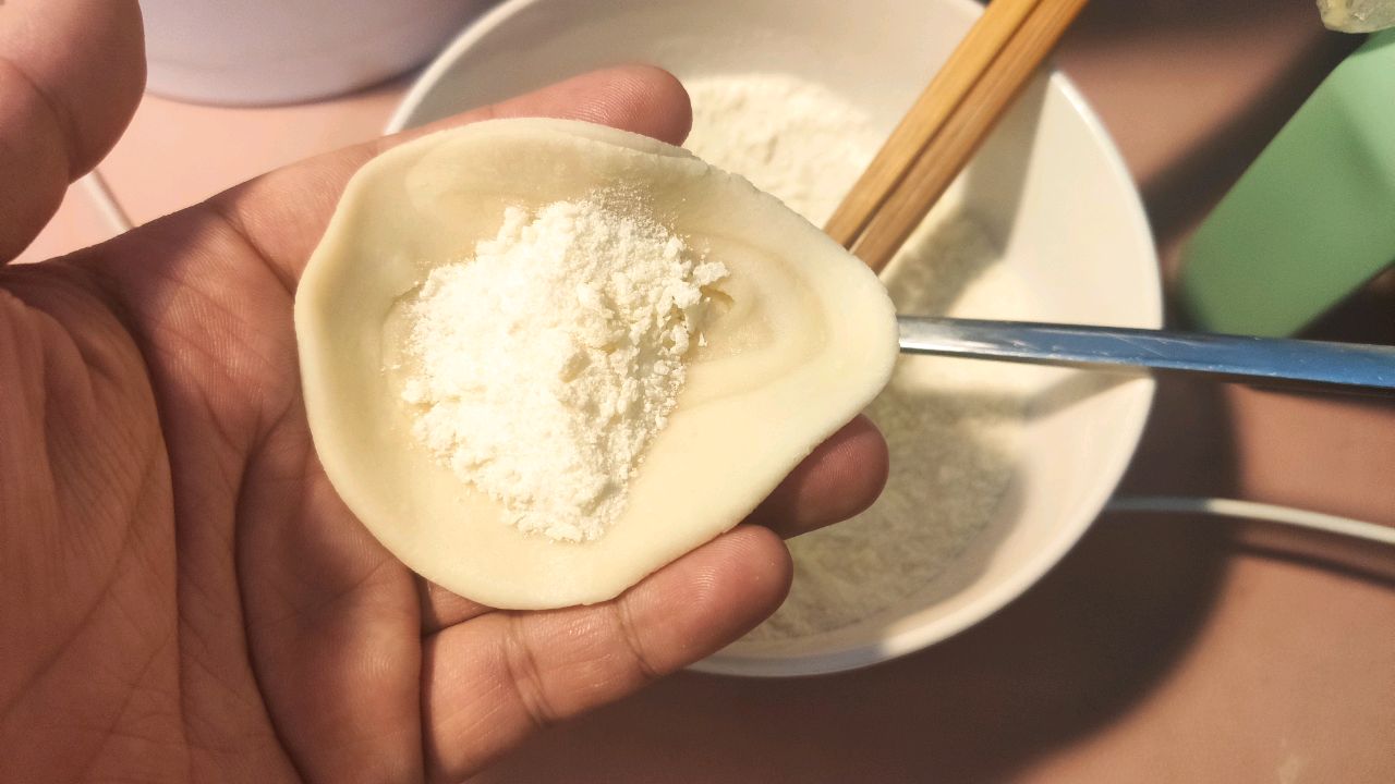 步骤9、制作糖馅,白糖,奶粉(根据喜好添加)
