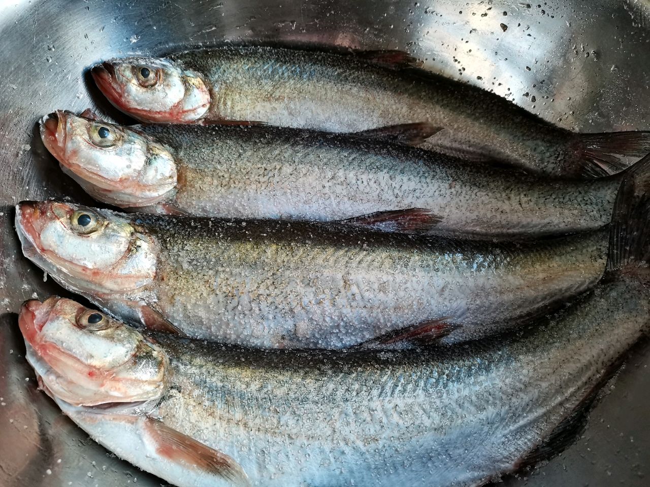 步骤5、腌制二个半小时左右,具体看鱼的大小和放盐的多少决定,我家一般这个时间就可以了。