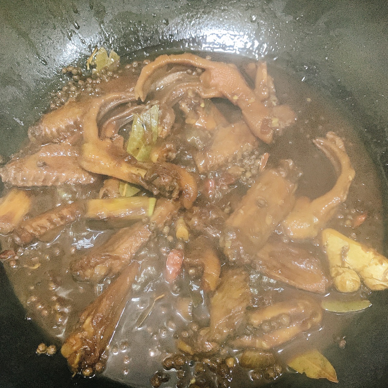 步骤4、焯水后的鸭爪翅膀捞出来加入材料