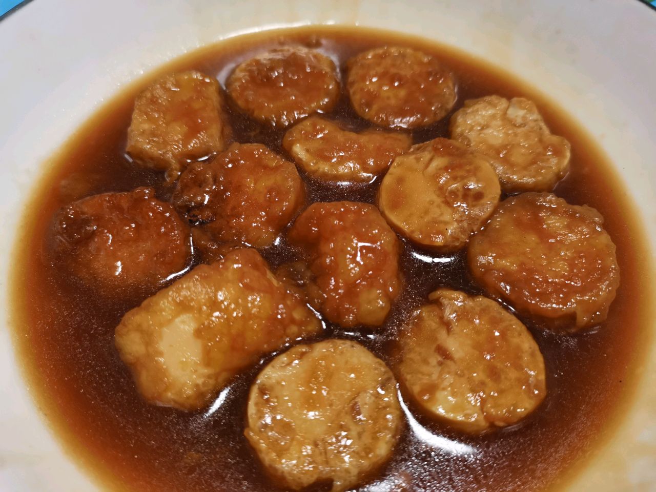 步骤1、日本豆腐切块,豆腐粘淀粉,下油锅炸,炸的有些黄出锅,锅里下淀粉水,(就是淀粉跟水,要冷水)水开下酱油跟点盐,熬成汁,下豆腐再煮一下就可以