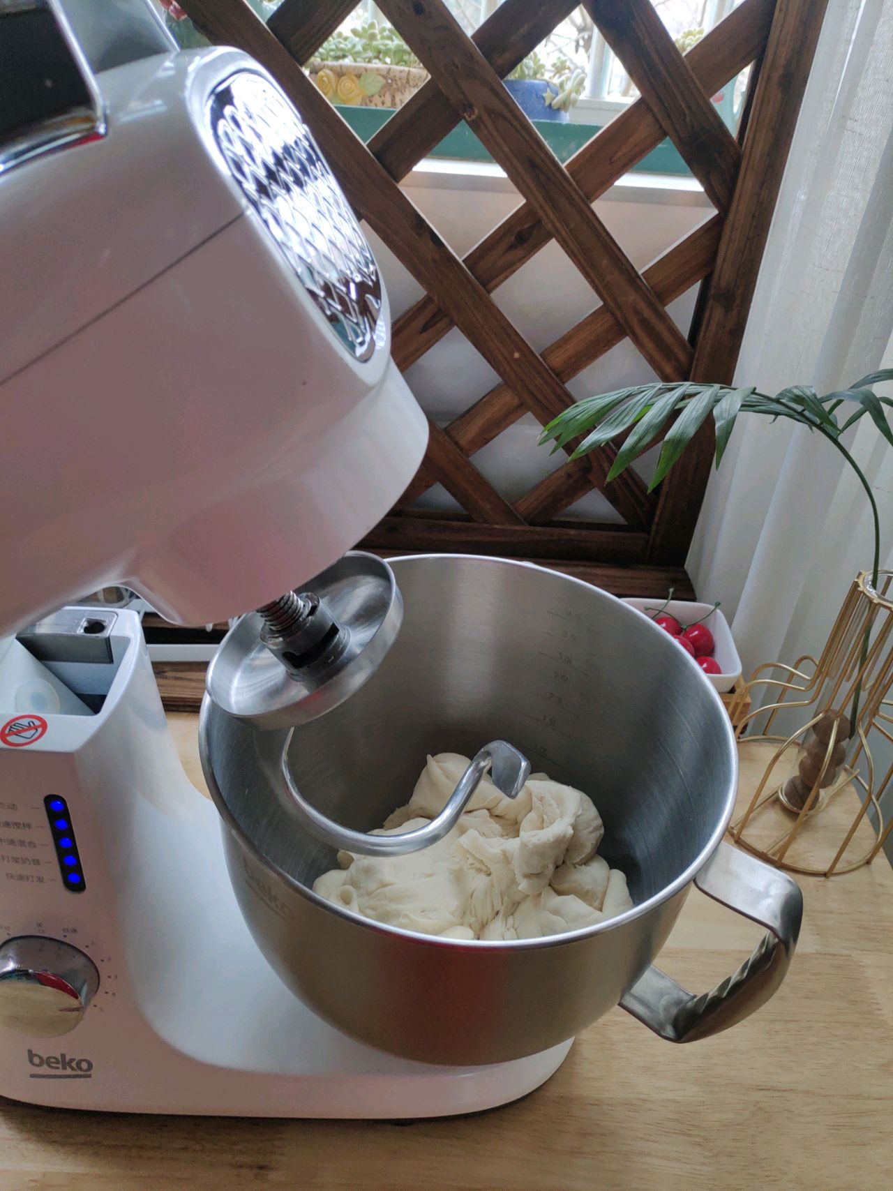 步骤3、四档继续打面5分钟即可,能看到一团光滑的面团。