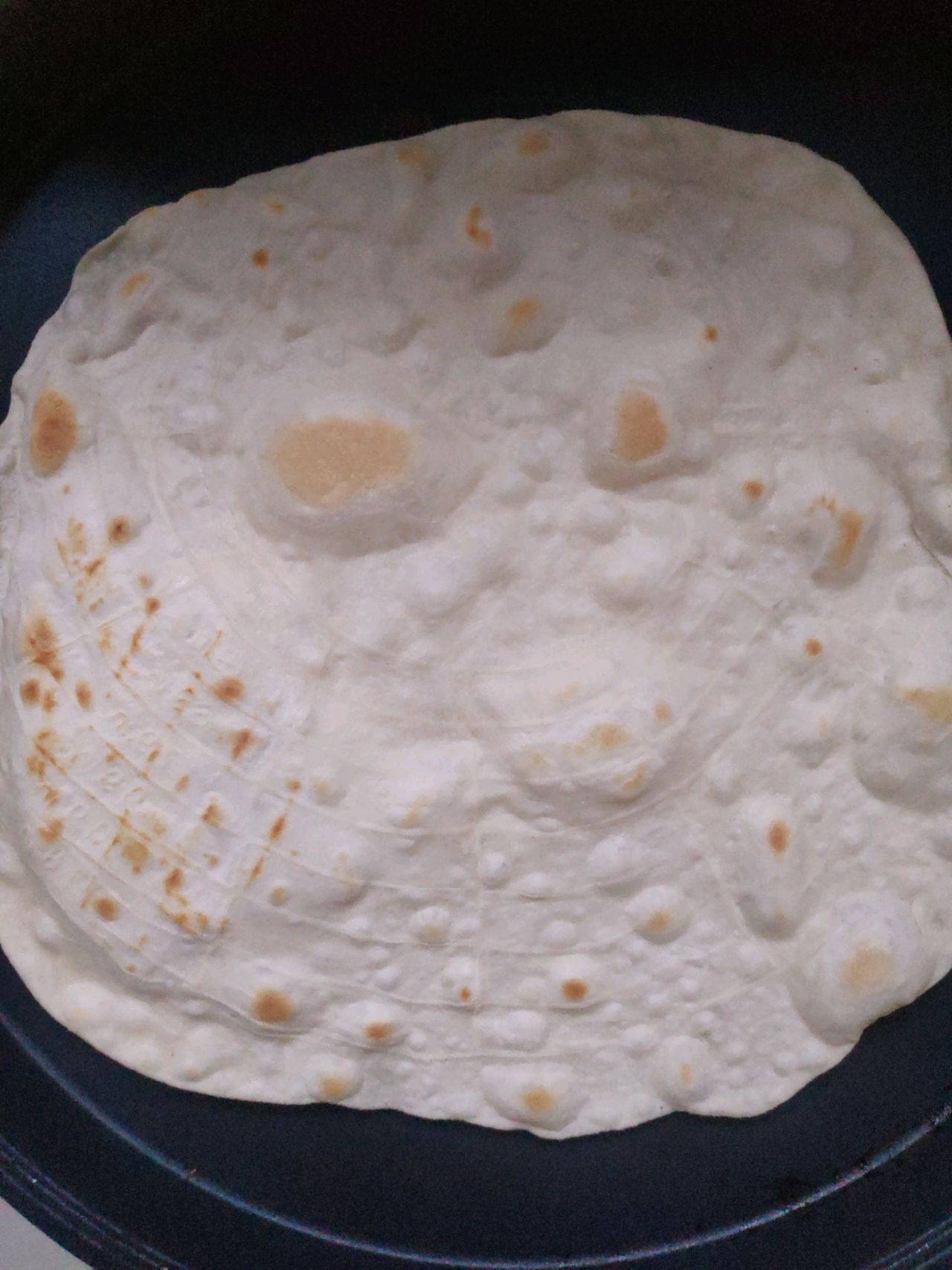 步骤5、取出一个面剂开始擀圆,擀好直接烙就可以了。