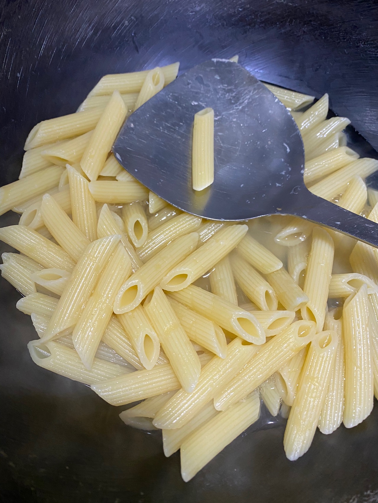 步骤7、与此同时去煮通心粉,水沸腾了下通心粉,煮12到15分钟