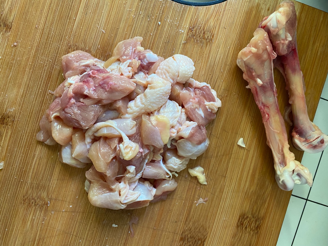步骤8、待火锅底料融化放入土豆条鸡腿肉