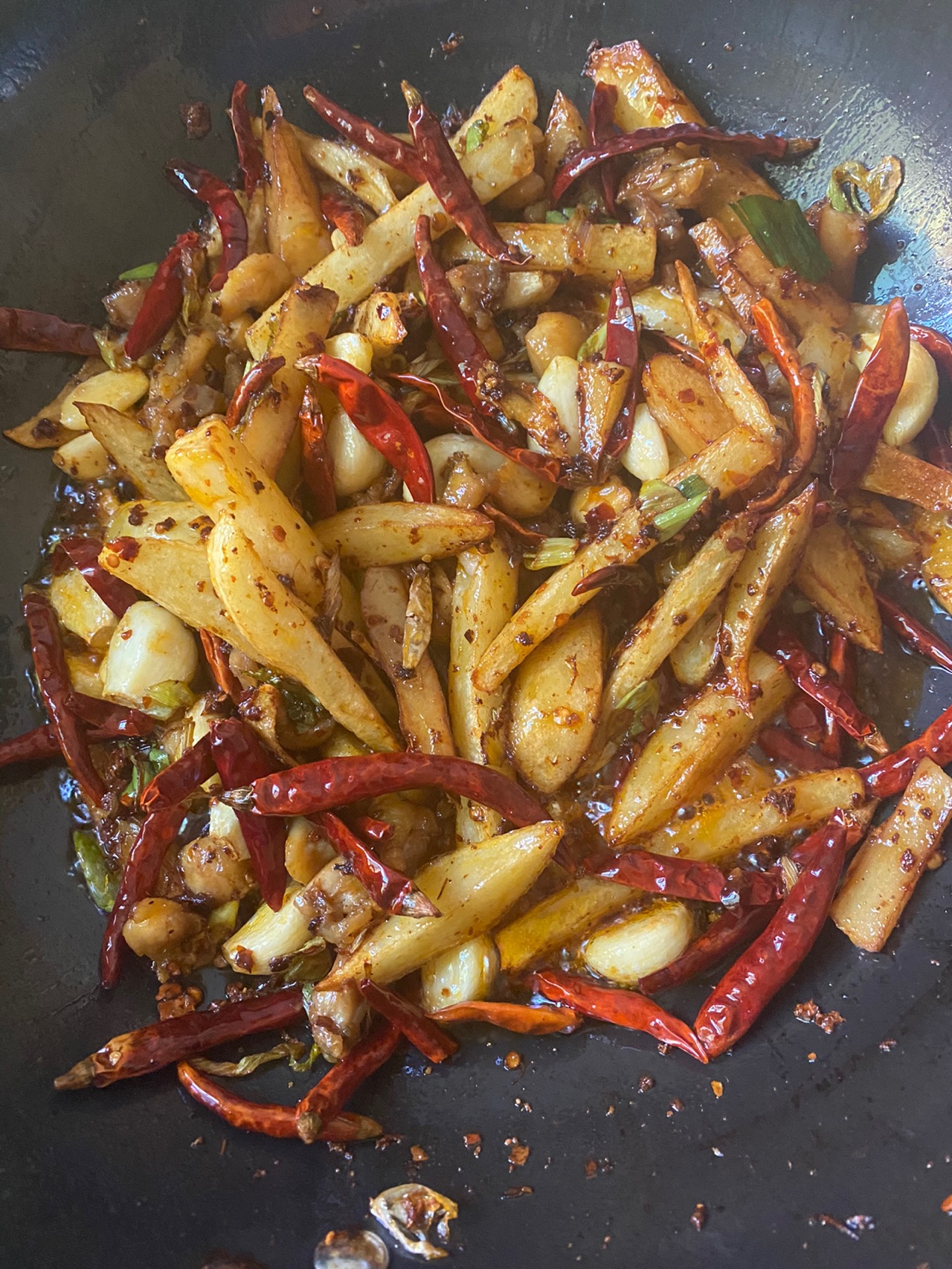 因为火锅底料里本身有盐 所以后面一定要适量 不然很容易变咸 如果不能吃辣不建议做这个道菜 因为这道菜的精髓就是干辣椒 葱蒜一定要足才香