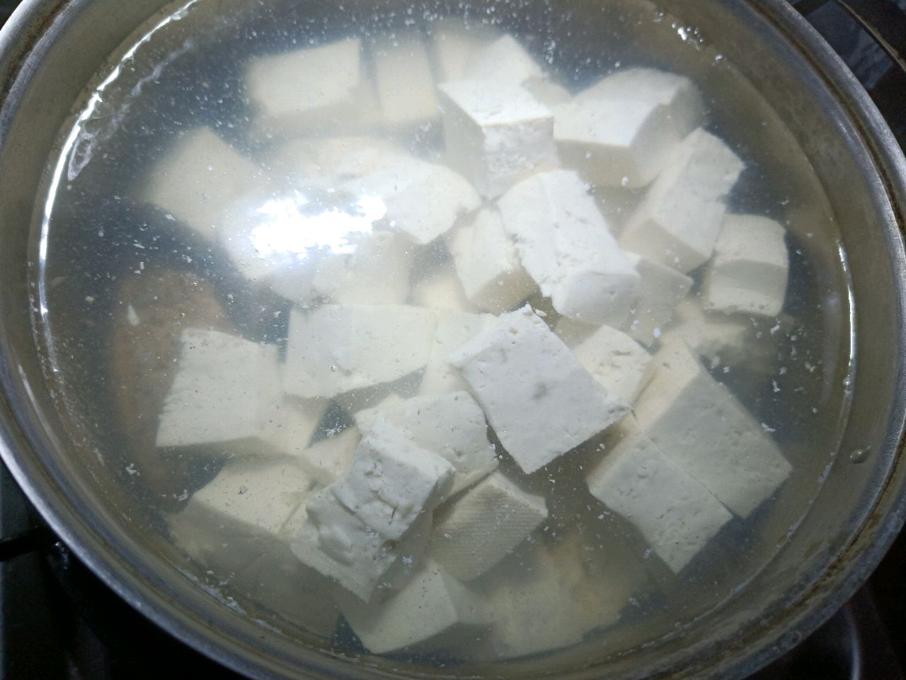 辅料:麻婆豆腐调味料1包、葱半根、姜丝5片、蒜末4瓣、清水适量