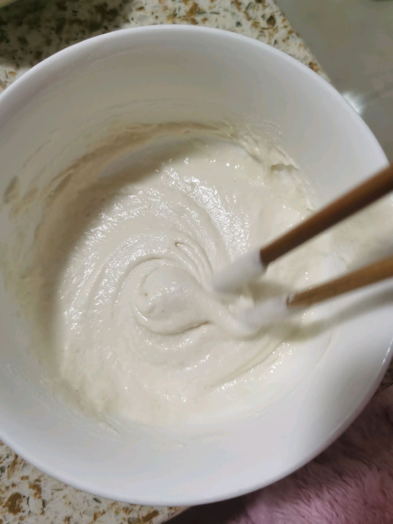 步骤2、面粉加温水调匀,不要太稀,没有粉粒就行