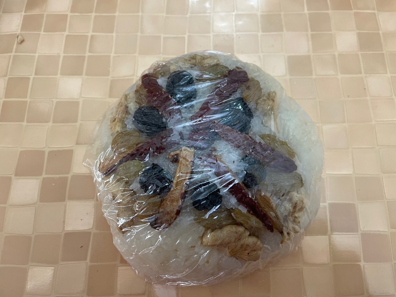 步骤8、放入家中的干果,摆好形状