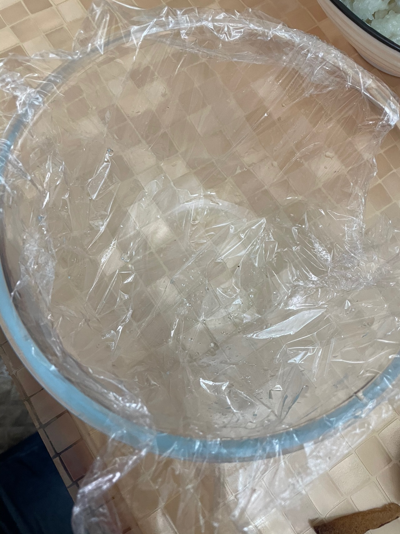 步骤6、圆碗中铺一层保鲜膜