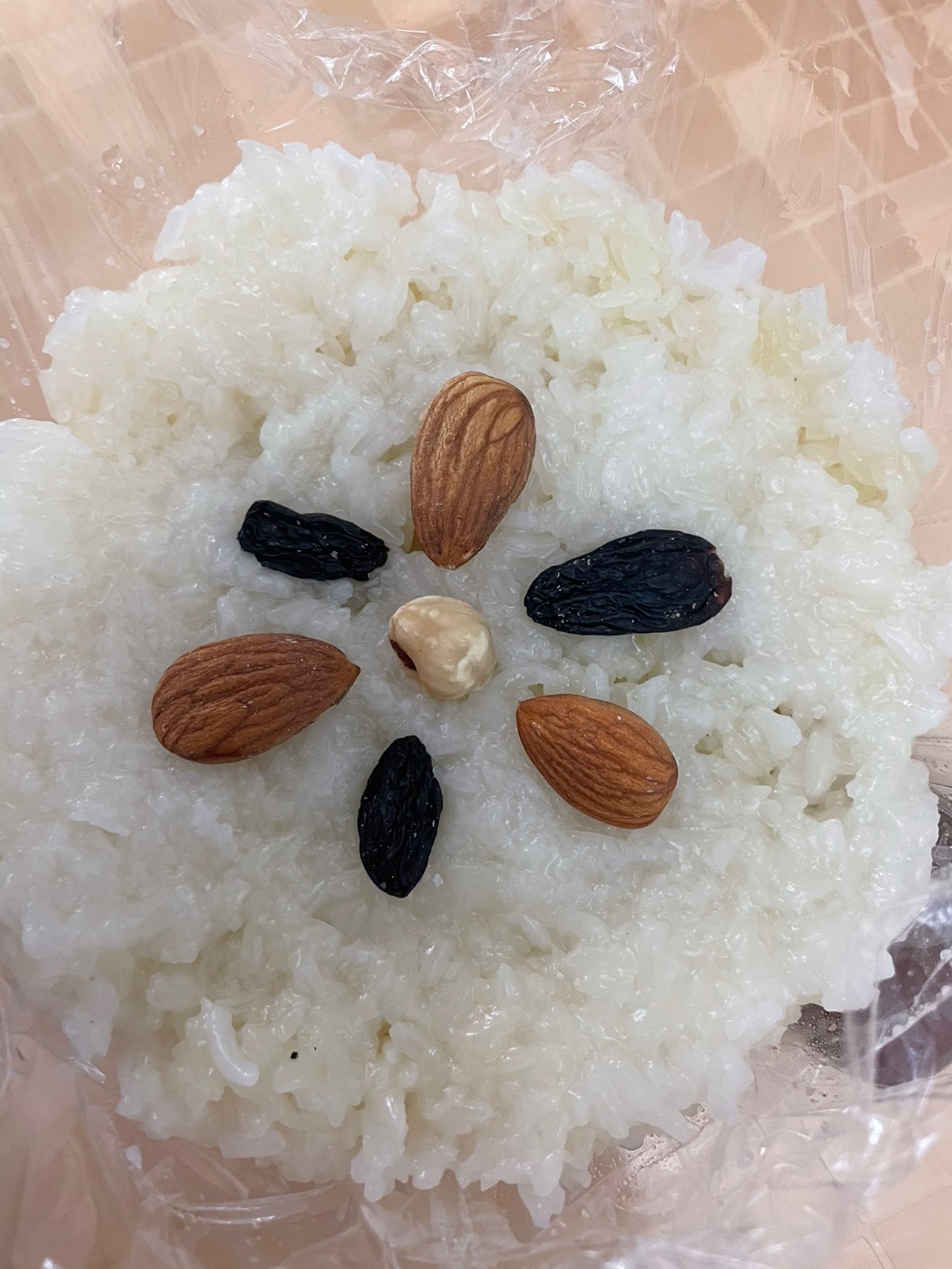 小时候姑姑总是自己做八宝饭给我们吃,今年我一看厨房里还有300g糯米,想着不妨试一试,可惜这次没有熬红豆沙,所以是没有陷的
