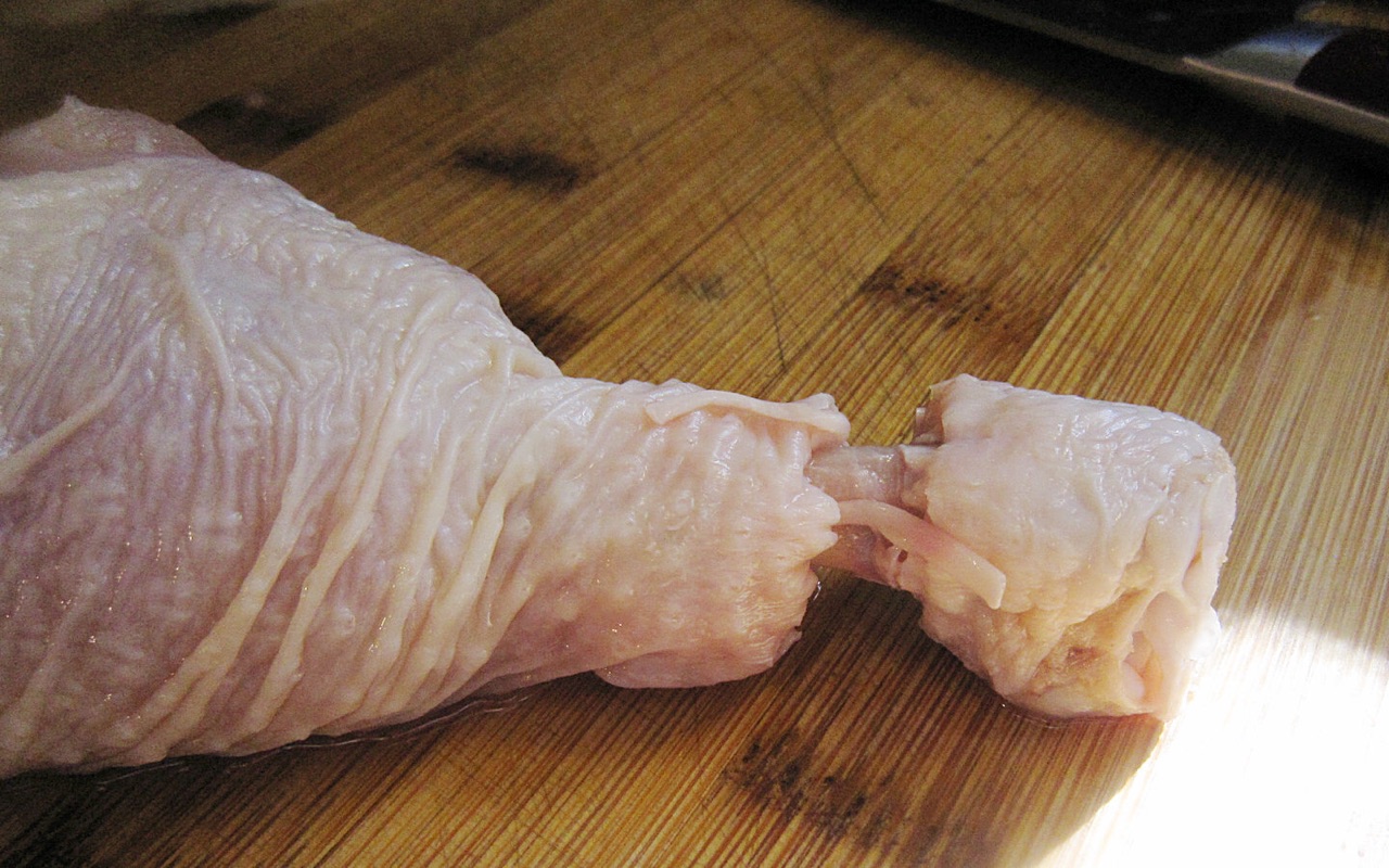 步骤2、再打竖来把鸡棒槌剖深至骨,如图;