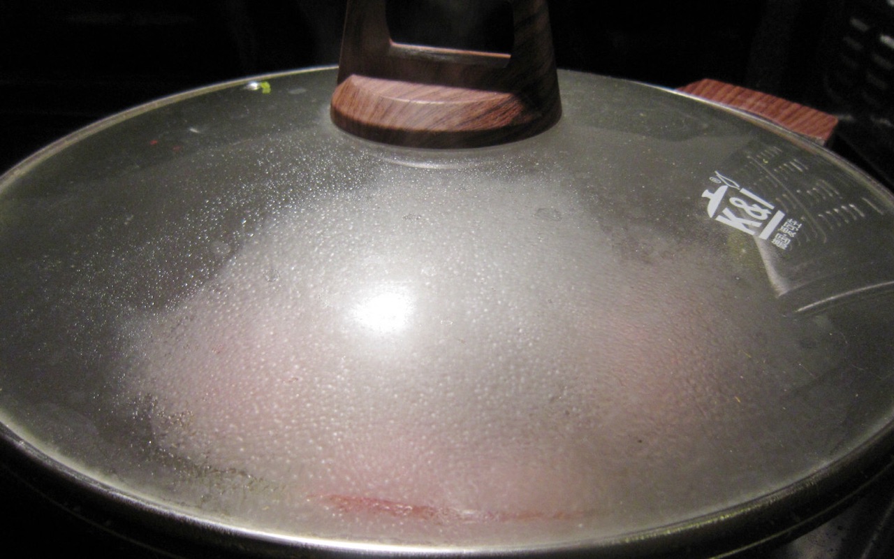 步骤8、开盖,把鸡棒槌翻面儿,此时会看见已经煎成金黄色;