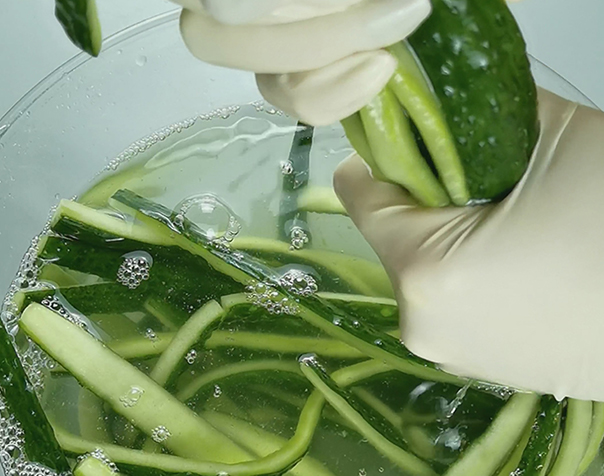 步骤1、黄瓜切成条。