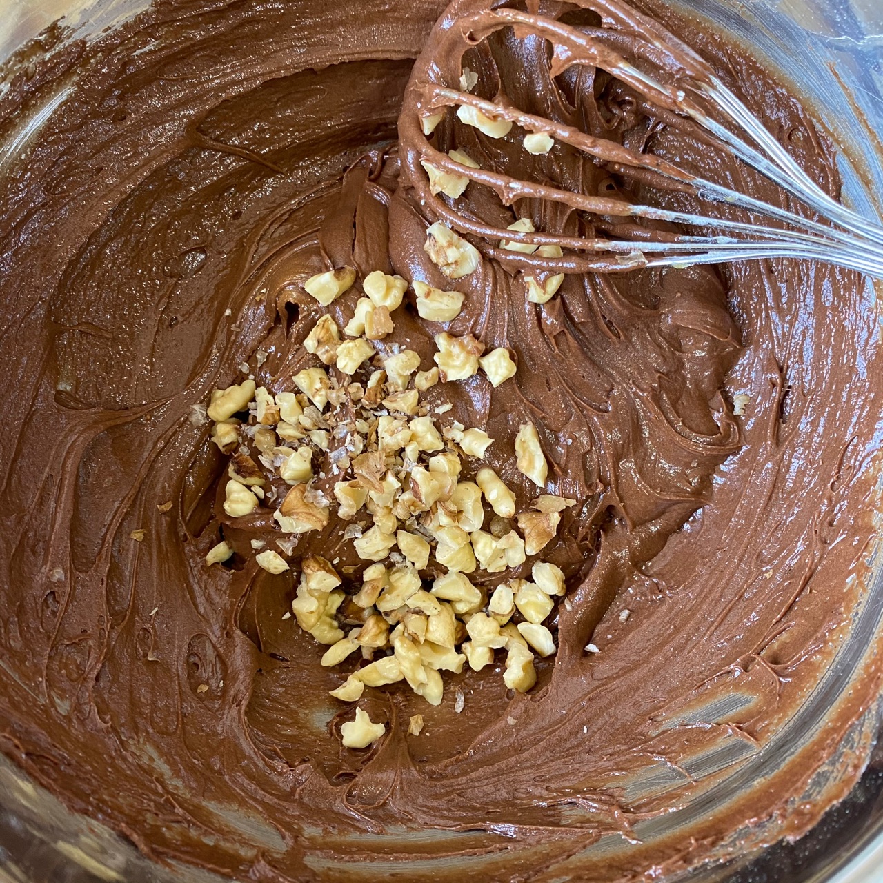 步骤4、筛入低筋粉搅拌均匀;加入熟核桃仁搅拌均匀;