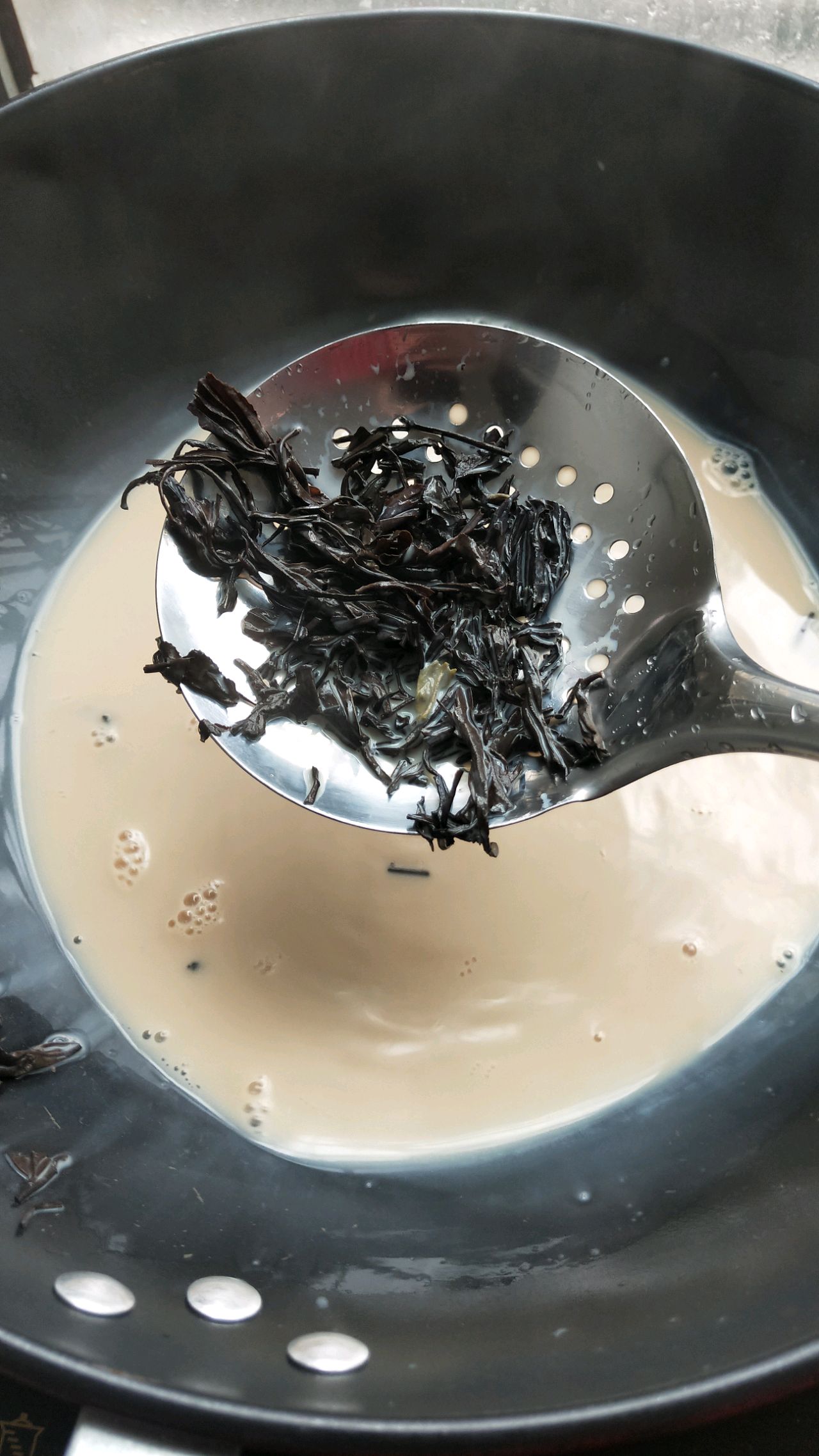 步骤4、煮个几分钟就差不多了,我煮了大概5分钟左右吧,把茶叶捞起来