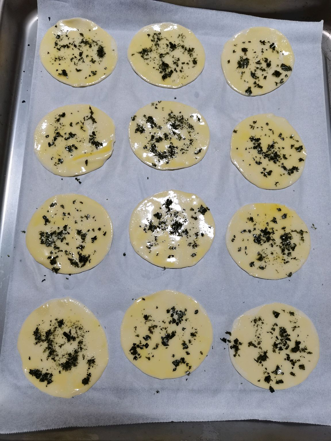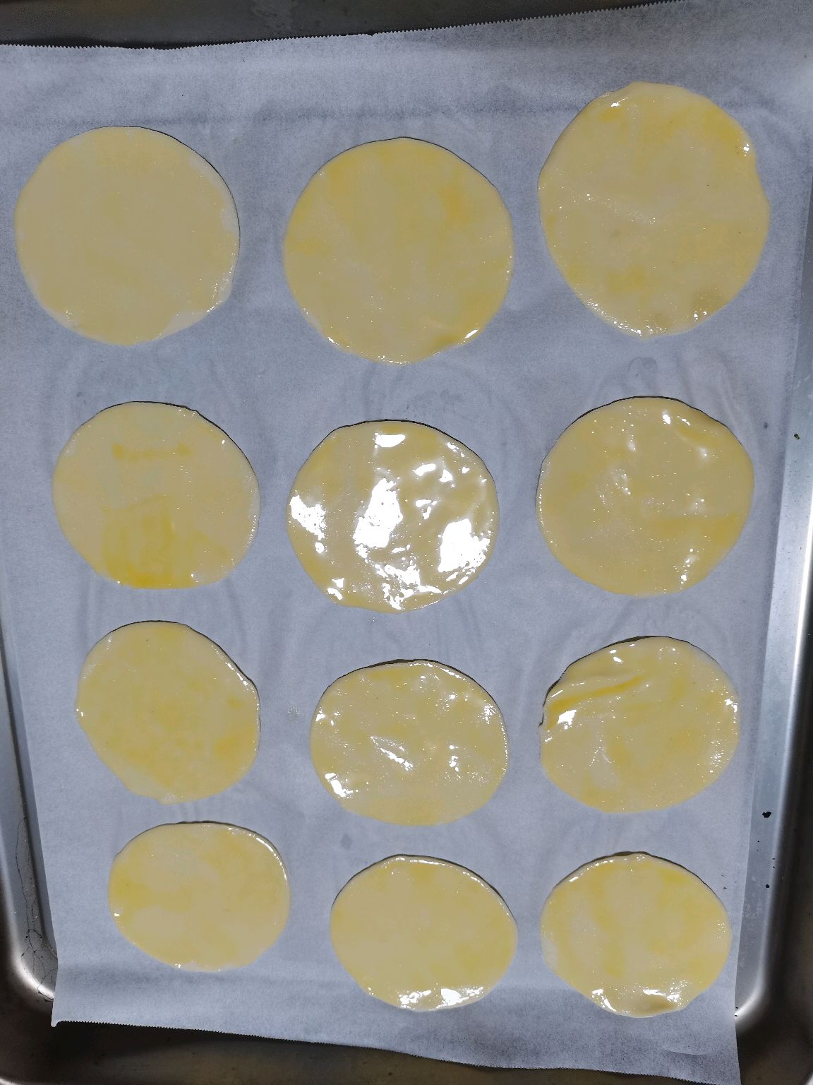步骤2、放入铺了油纸的烤盘上,中间留有距离