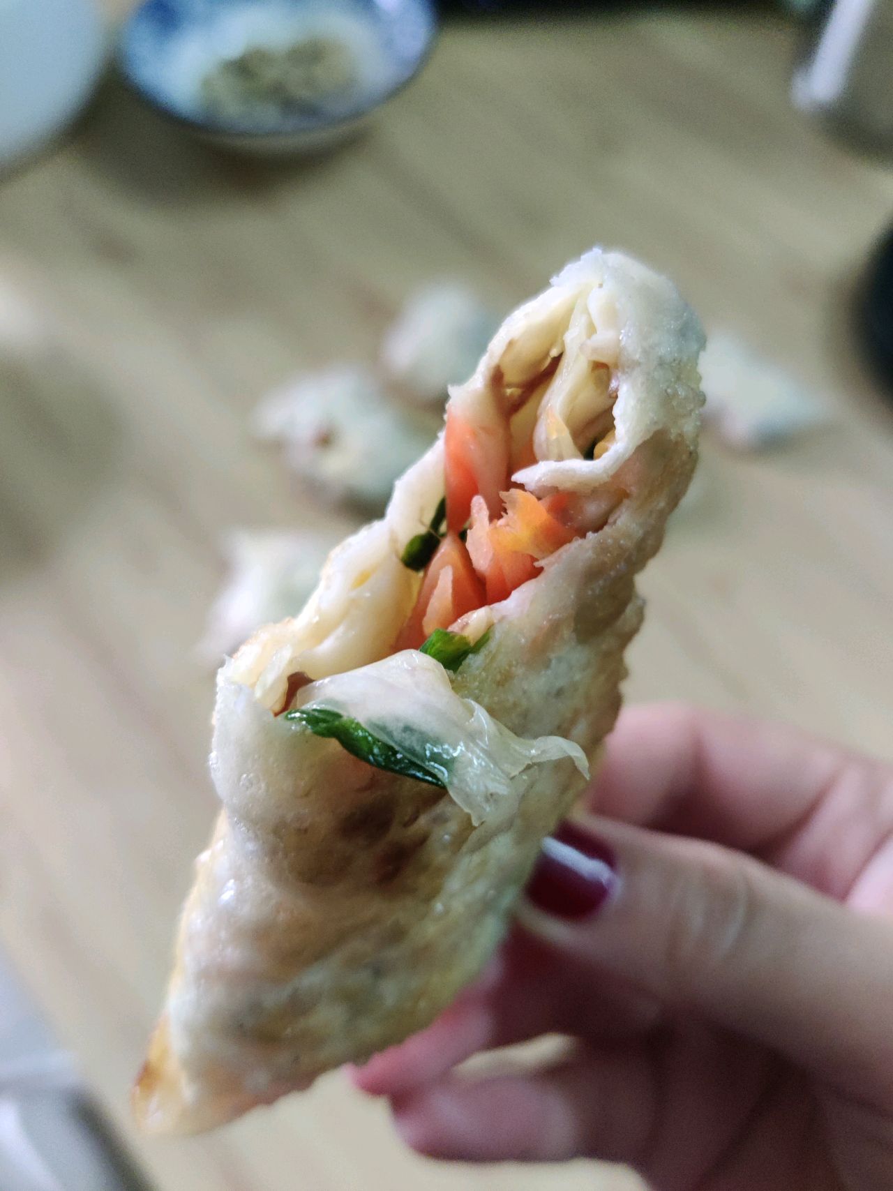 步骤2、饺子皮包菜,用鸡蛋液封口