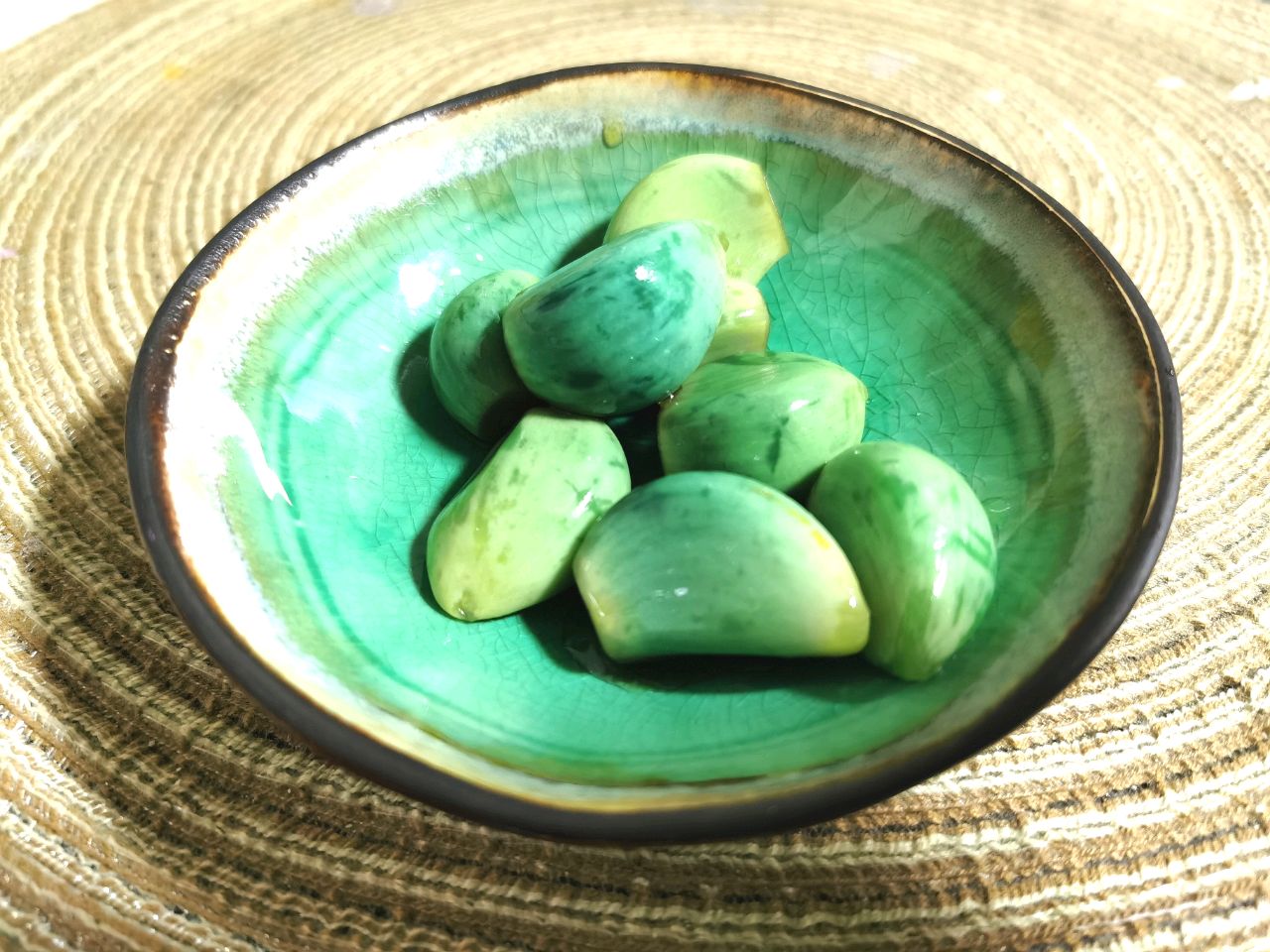 步骤4、将大蒜装入干净无水无油的瓶中,倒入晾凉的醋汁(放在暖气片上可加速绿化)。