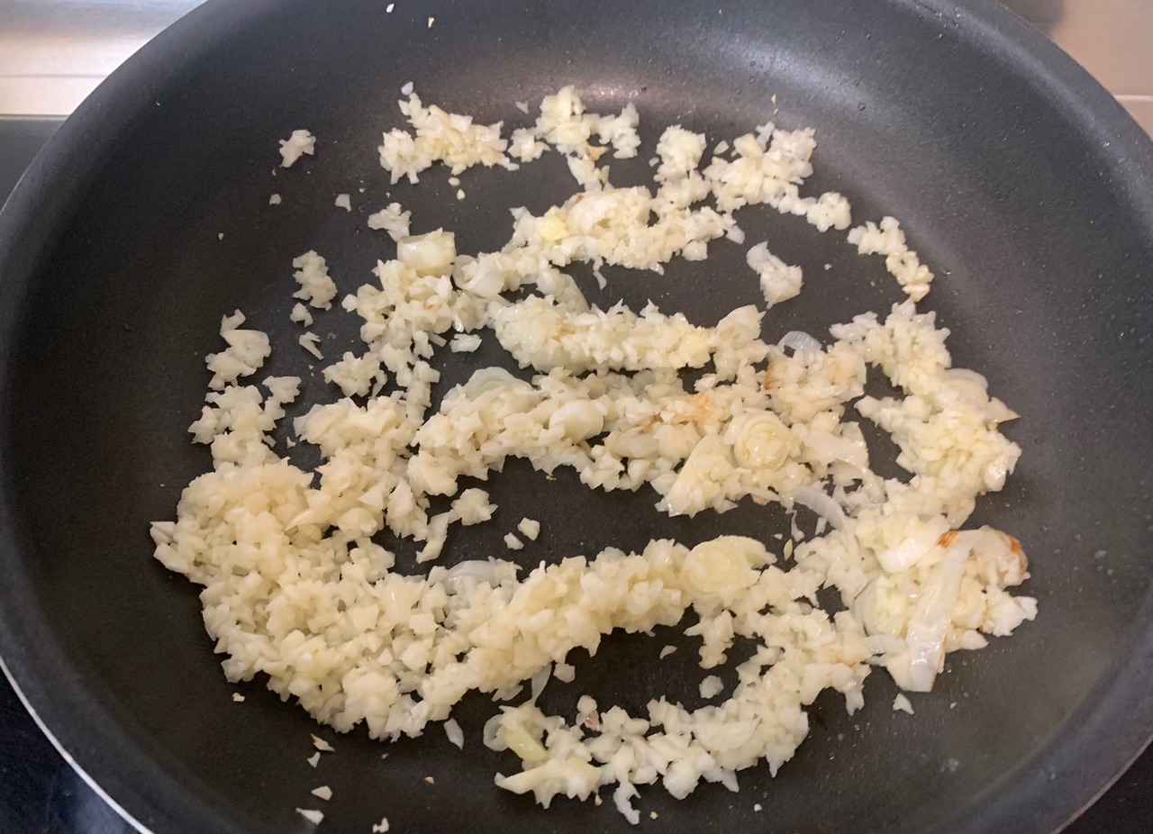 步骤3、锅中放油,炒香蒜末葱花