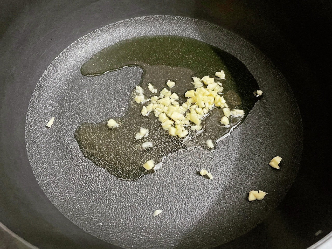 步骤4、锅中倒入适量的食用油烧热,放入蒜末爆香