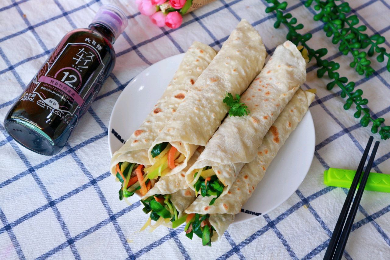 步骤20、美味春饼就可以开吃啦!蔬菜清爽,饼又香又有嚼劲。忍不住吃好几个。