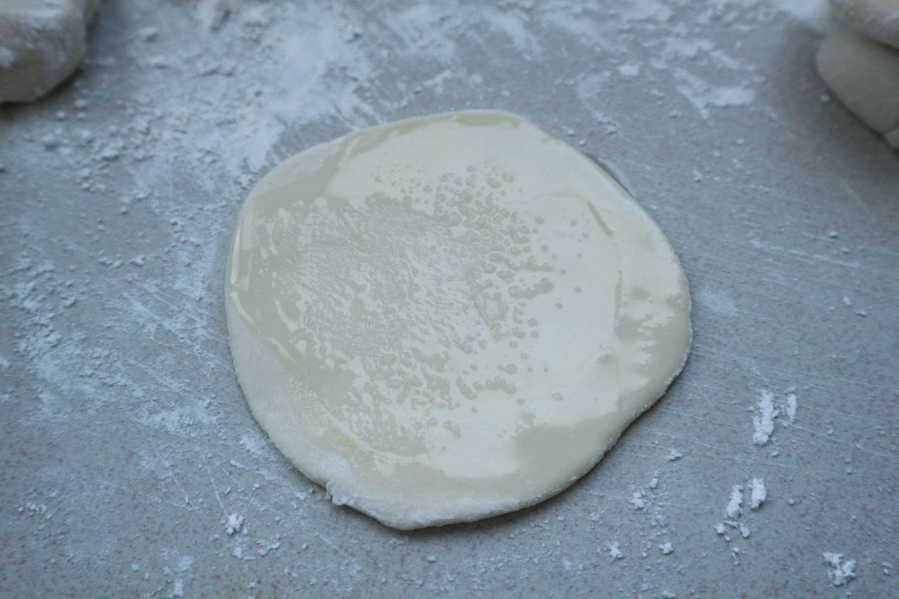 步骤11、烙好的饼依次盖在一起,这样不跑热水饼会柔软一些。