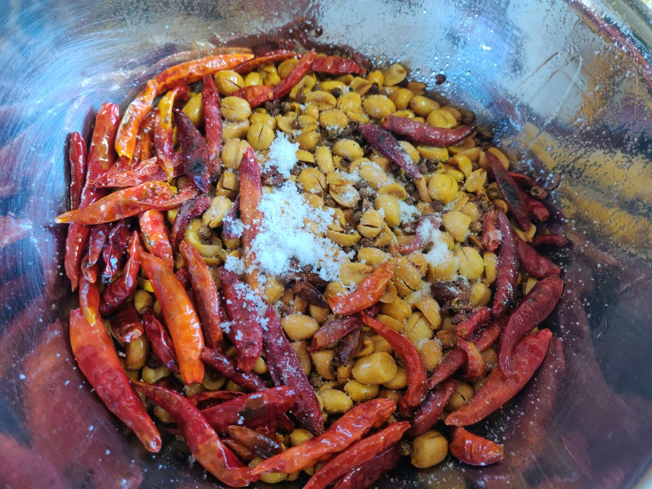 辅料:干辣椒一把、盐适量、糖适量、八角3个、花椒一把
